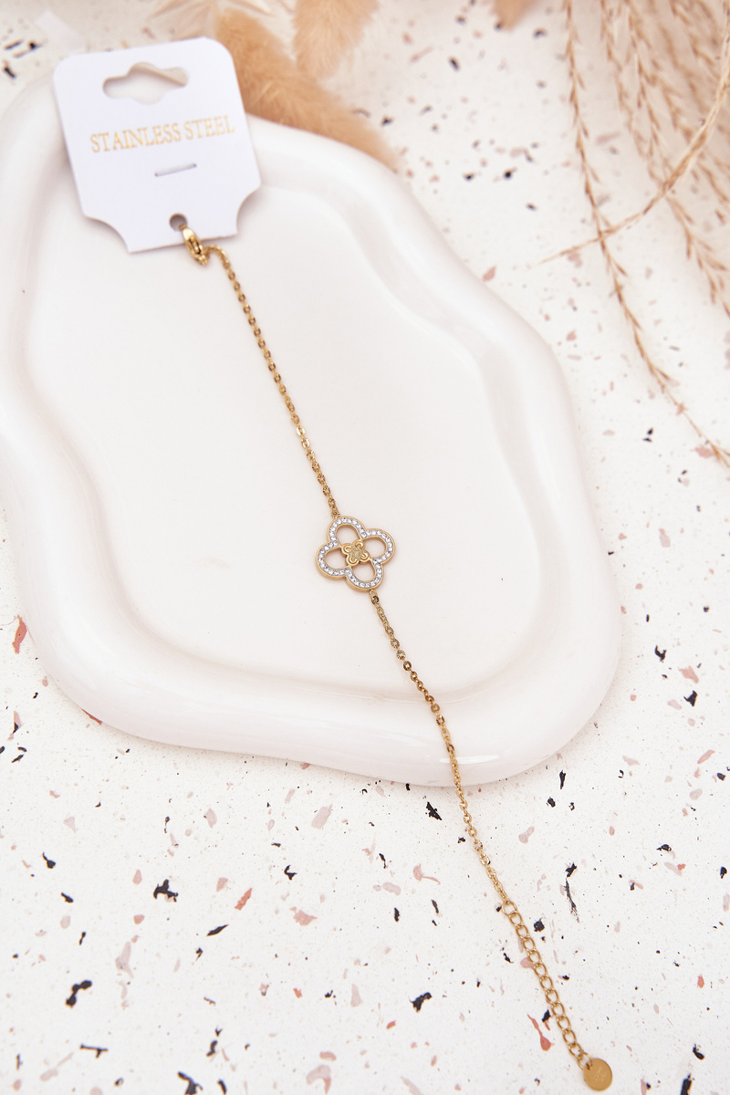 Women's bracelet made of surgical steel in gold color is an accessory that will add shine to any outfit. Decorated with sparkling cubic zirconia, it looks subtle and very feminine. The adjustable clasp allows it to fit perfectly on the wrist, ensuring comfort for everyday wear. Stylish, durable, and versatile — perfect for both daily wear and special occasions.