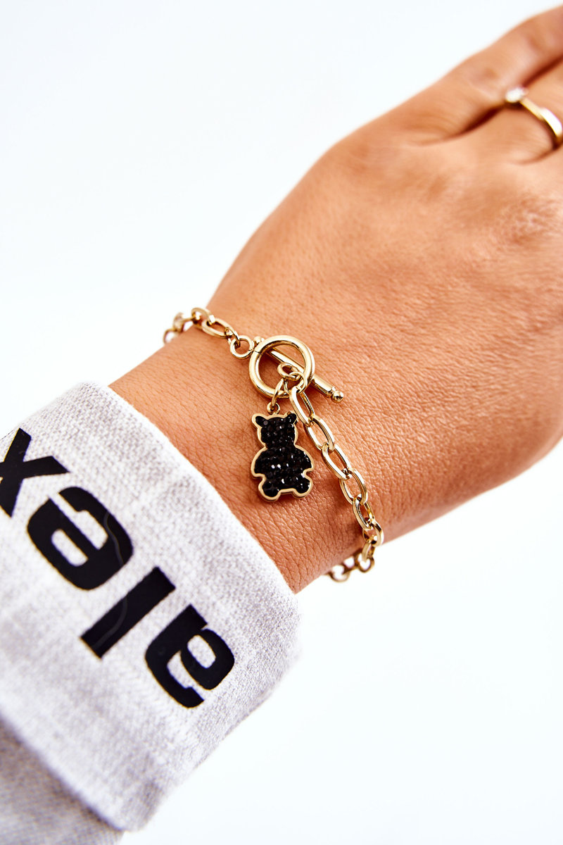 A unique women's bracelet made of stainless steel. The length is not adjustable. Ornament in the form of a teddy bear with imitation of cubic zirconia. The bracelet has a wider strap. It presents itself extremely exceptionally. Be sure to also check out the rest of our offer of available jewelry models. Great model, you must have one!