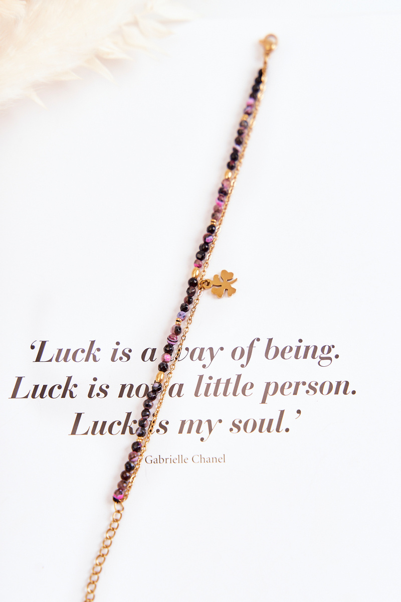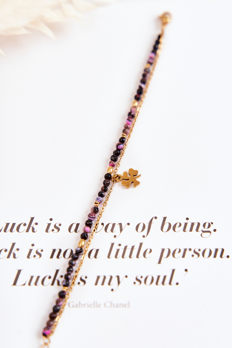 Every styling needs accessories, even the smallest ones! Beautiful jewelry that will subtly emphasize feminine beauty will be the perfect solution! A wonderful bracelet on a double chain with a pendant and fashionable beads. The bracelet is made of stainless steel. The bracelet is adjustable in length. Check out our entire jewelry collection and choose your favorite accessory!