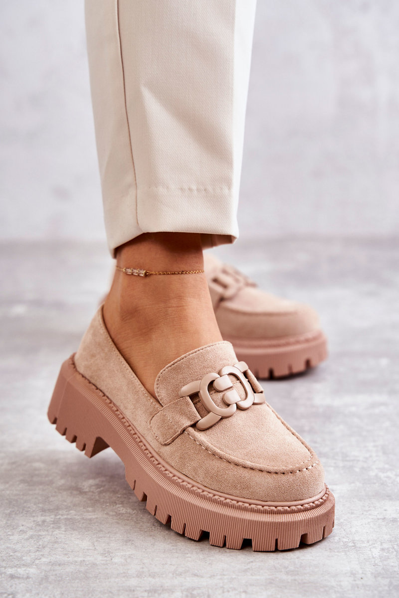 Classic shoes are made of eco suede. Characteristic decoration on the front. These shoes have a platform and a flat heel. The grooved sole will perfectly isolate from uneven ground. Comfortable and fashionable shoes are perfect for work, shopping or meeting friends. A soft insole made of eco leather will ensure comfort during use. You absolutely must have them! When choosing a size, please use the size chart.