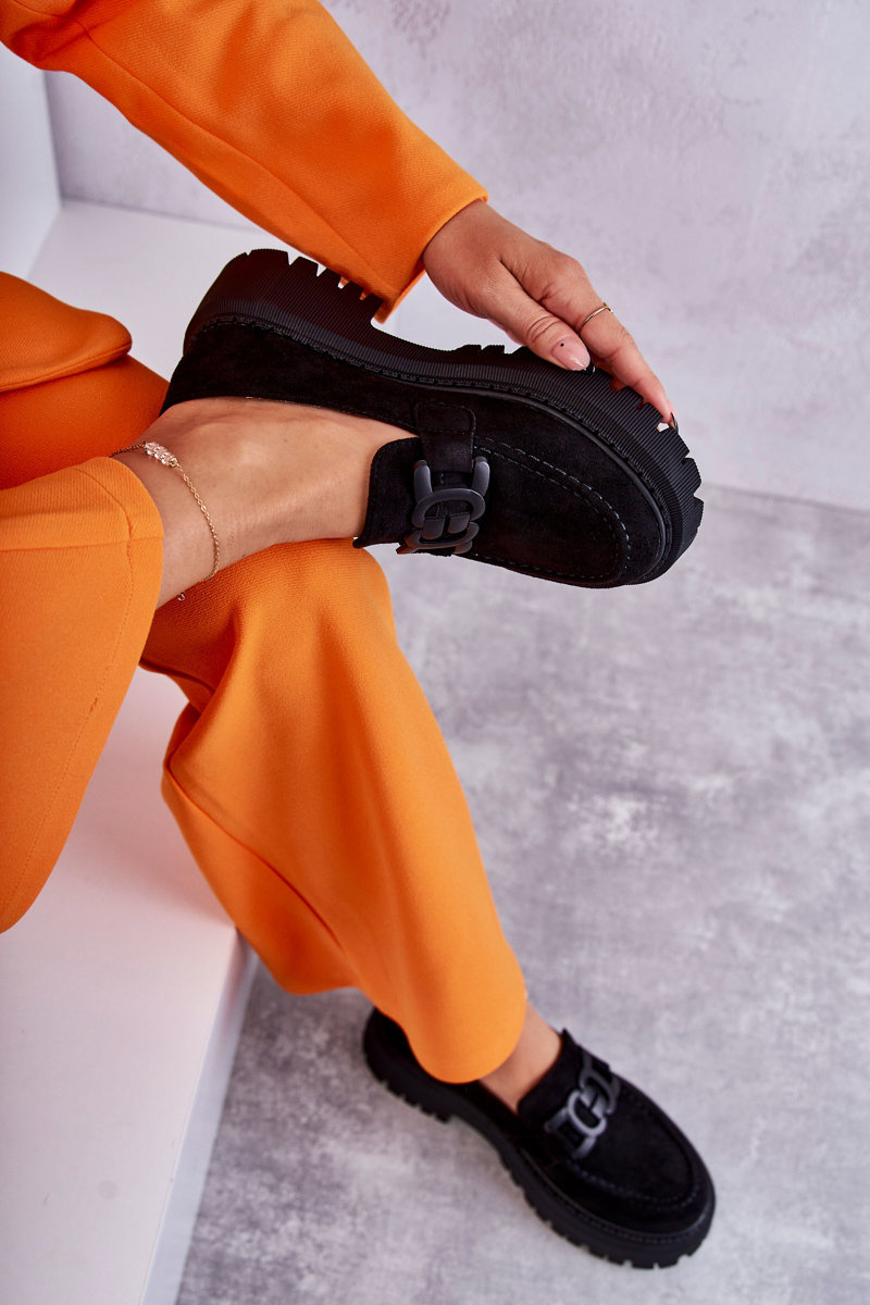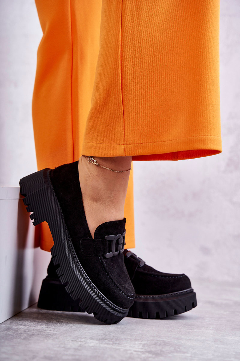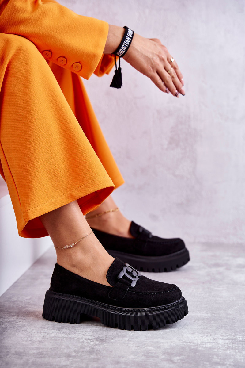 Classic shoes are made of eco suede. Characteristic decoration on the front. These shoes have a platform and a flat heel. The grooved sole will perfectly isolate from uneven ground. Comfortable and fashionable shoes are perfect for work, shopping or meeting friends. A soft insole made of eco leather will ensure comfort during use. You absolutely must have them! When choosing a size, please use the size chart.