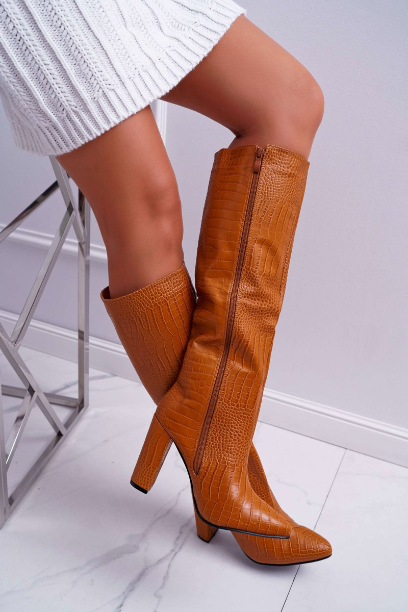 Women's Camel Aduan Serpent Leather Stiletto Boots