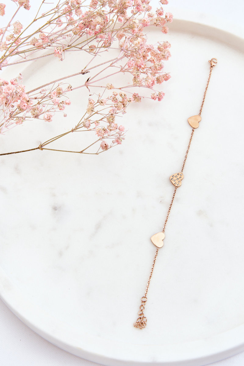 Women's Celebrity Bracelet 3 Hearts Rose Gold