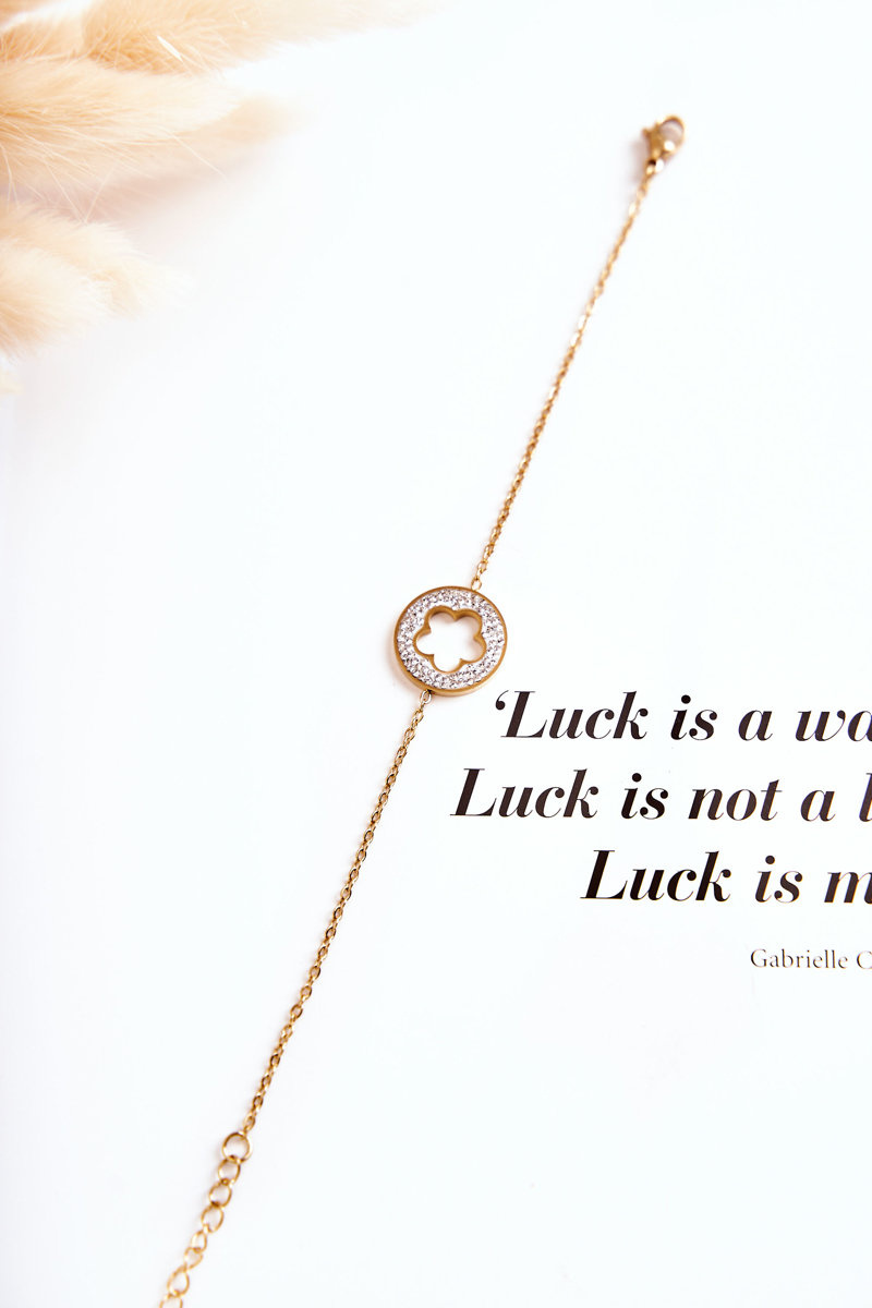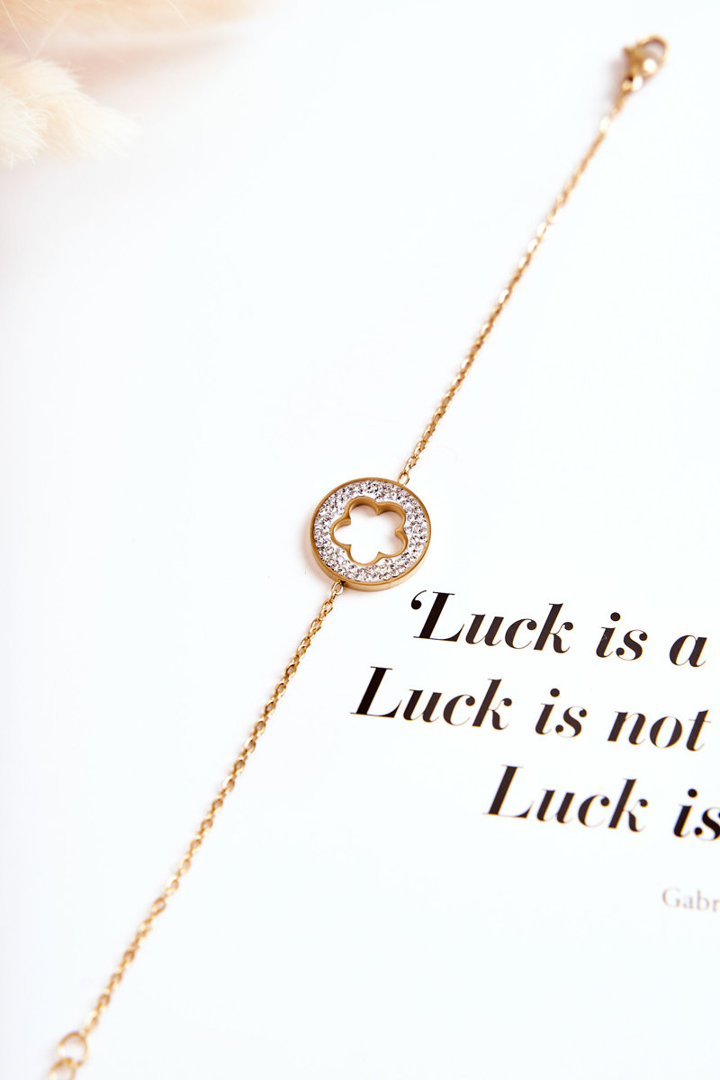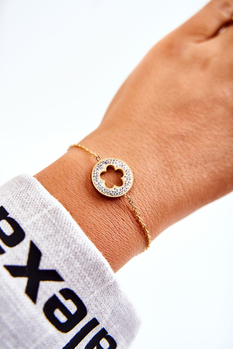 A pretty bracelet on a thin chain like a celebrity. It was made of stainless steel. It is adjustable in length. In the center of the bracelet there is an ornament in the form of a circle with a flower in the center with cubic zirconia. A perfect addition to styling not only everyday but also more elegant ones. This model has a classic clasp. Be sure to also check out the other models of jewelry available in our offer!