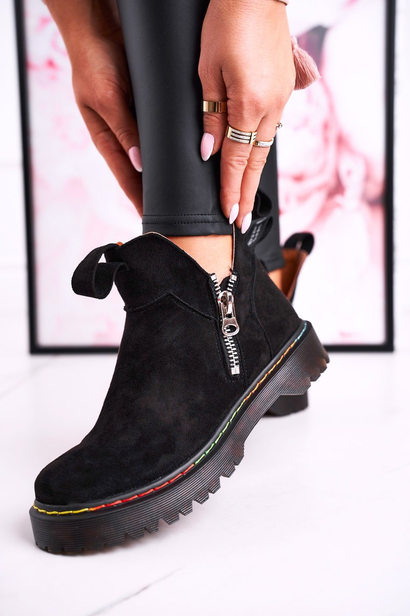 Women's Chelsea Boots With Colorful Stitching Suede Black Addison