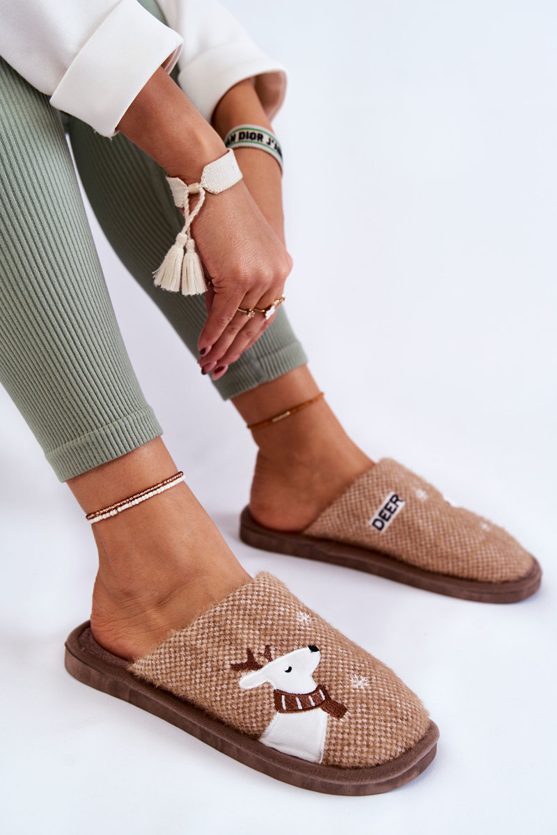 Women's slippers are made of textile material with the addition of delicate eco fur. Inside, they have insulation in the form of a shoe blanket. Decorated with a reindeer and snowflake motif on the top. The soft insole will ensure comfort during use. Set on a rubber, flexible sole. When choosing a size, please refer to the size chart.