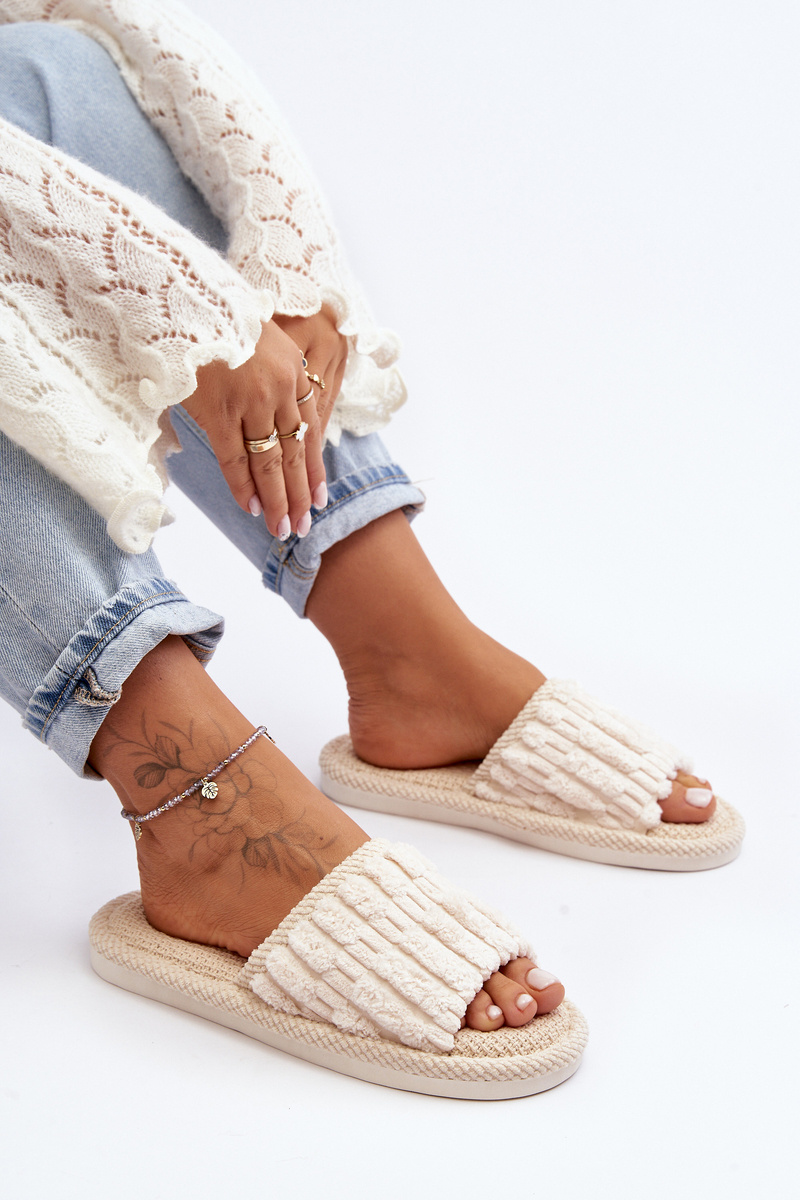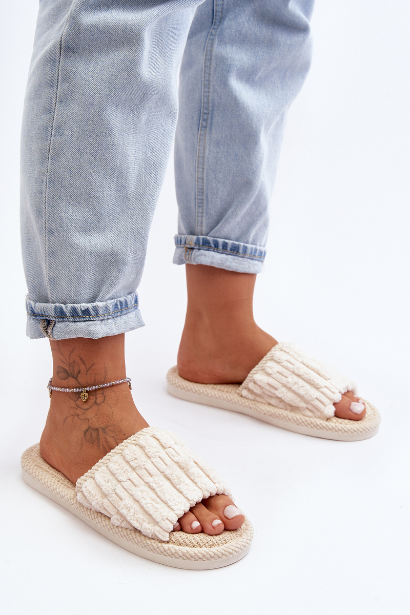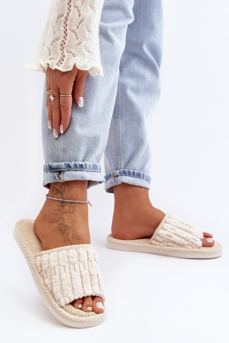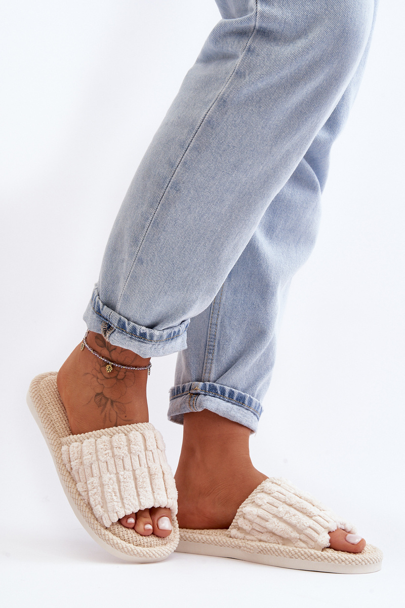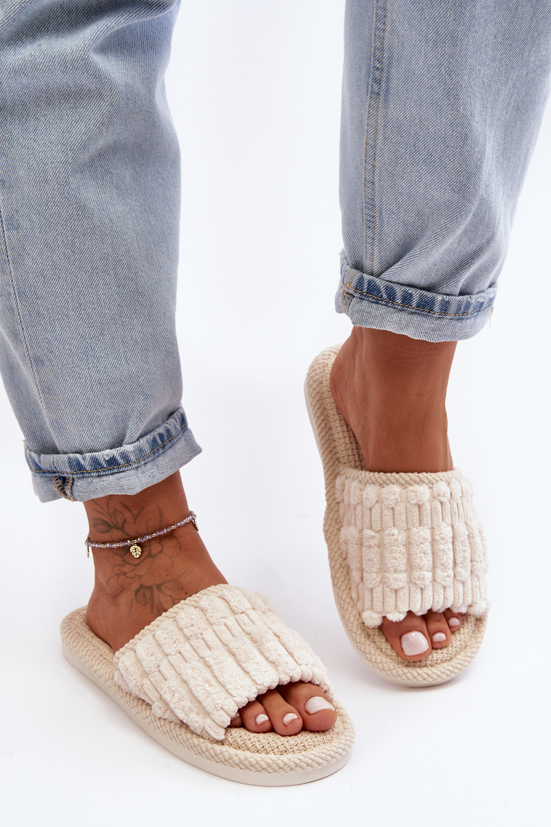 Cozy slippers with a flat, rubber sole are the perfect choice for cooler days. Made of soft, faux fur, they provide warmth and comfort. There is a cute patch on the front of the slippers. Open toes. Excellent for relaxing at home! When choosing a size, please refer to the size chart.