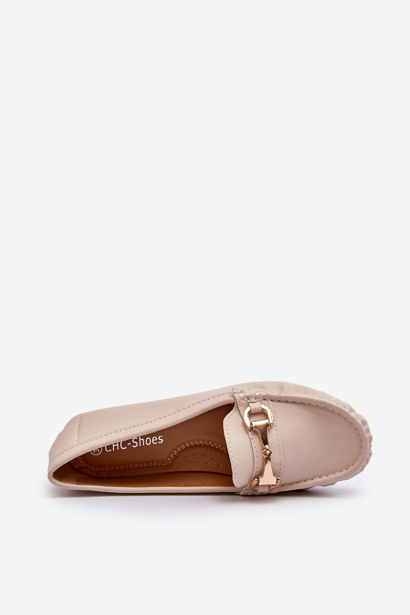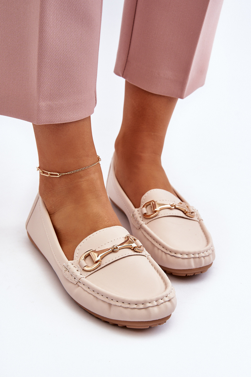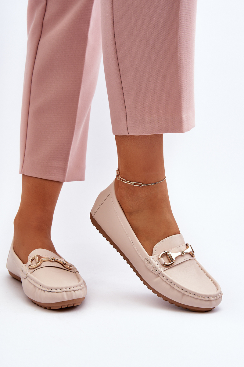 Women's moccasins are shoes that should be in every woman's wardrobe. Made of eco leather. The front is decorated with a strap with a golden ornament. Rounded toes add a subtle charm to them. This classic style will certainly complement many spring-summer stylizations! When choosing a size, please refer to the size chart.