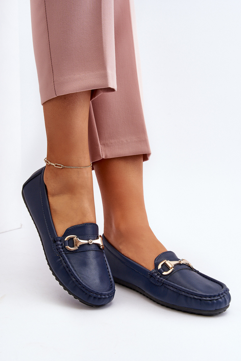 Women's moccasins are shoes that should be in every woman's wardrobe. Made of eco leather. The front is decorated with a strap with a golden ornament. Rounded toes add a subtle charm to them. This classic style will certainly complement many spring-summer stylizations! When choosing a size, please refer to the size chart.