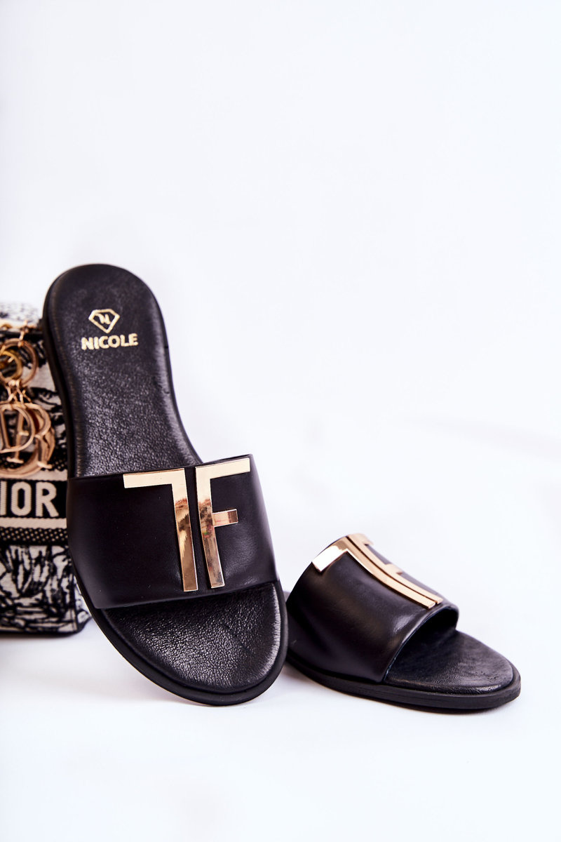 Women's Classic Leather Slippers Black Adele
