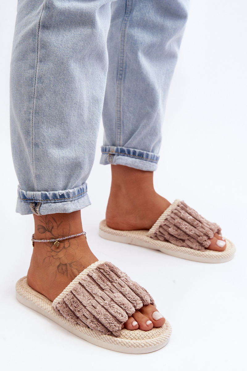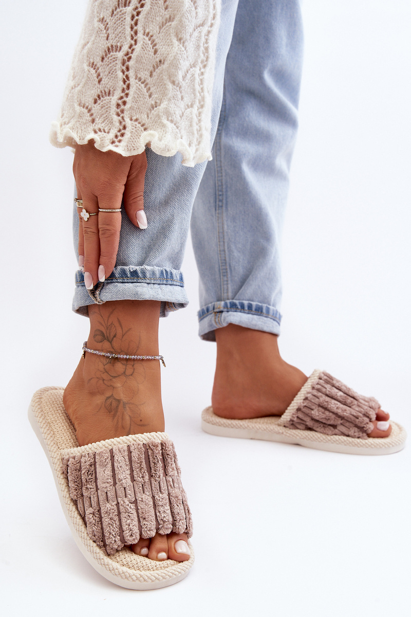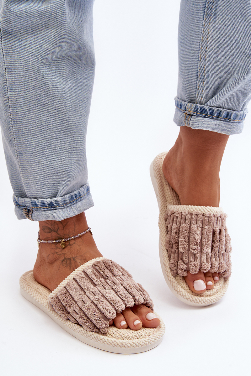 Cozy slippers with a flat, rubber sole are the perfect choice for cooler days. Made of soft, faux fur, they provide warmth and comfort. There is a cute patch on the front of the slippers. Open toes. Excellent for relaxing at home! When choosing a size, please refer to the size chart.