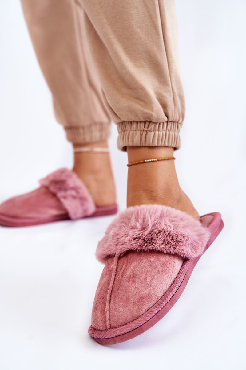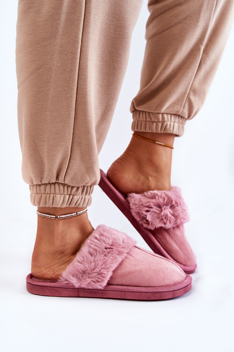 Classic, women's slippers are made of a soft textile material with an additional trim in the form of eco fur. This model has a soft insole and insulation in the form of a footwear blanket. This home footwear is perfect for autumn and winter days. The slippers are mounted on a flexible rubber sole. When choosing a size, please refer to the size chart.