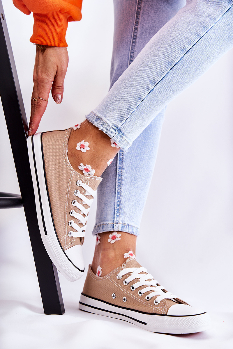 Classic, tied women's sneakers. The shoes have a rubber sole, which is additionally non-slip. The soft upper is made of textile material. A timeless model that you should have in your wardrobe! Toe reinforced with rubber material. Comfortable, material insole will ensure comfort during use. When choosing a size, please use the size chart.