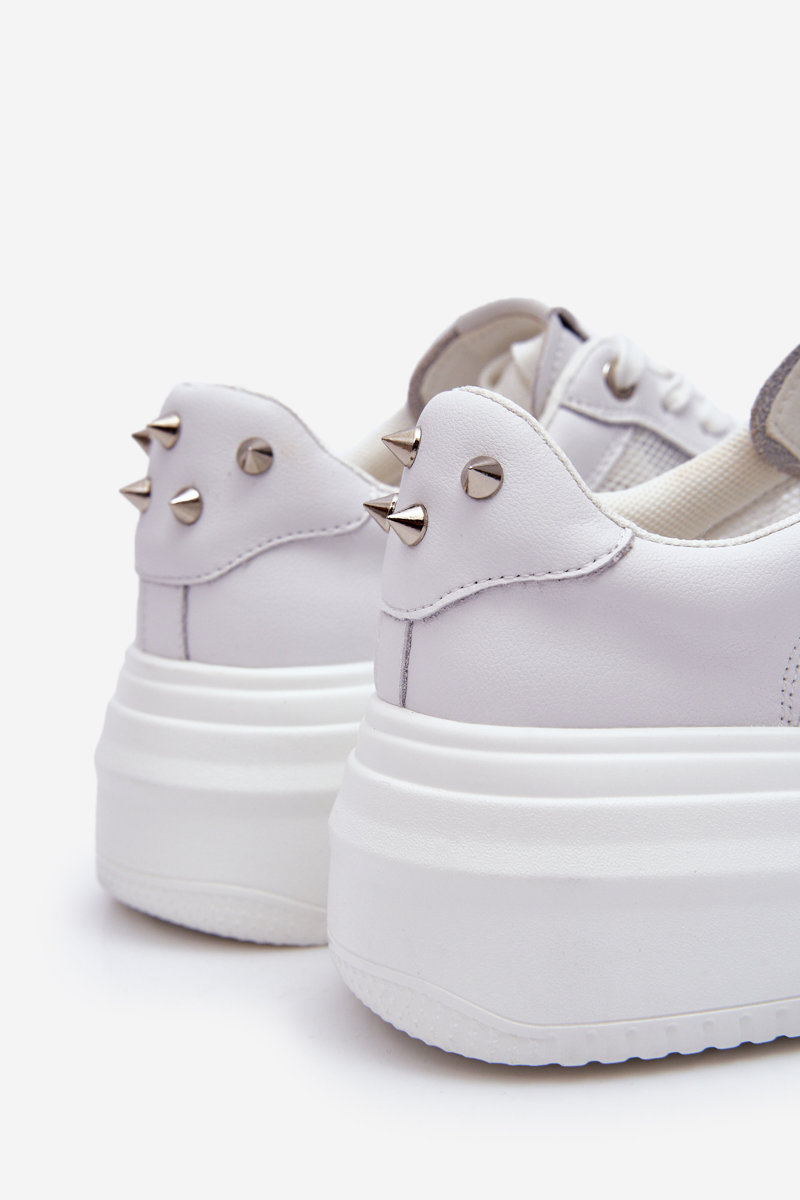 Do you value high quality and comfort when using footwear? If so, these shoes are just for you! GOE sneakers are made of natural leather and airy, mesh fabric. The stiffened heel counter was decorated with studs. The shoes were set on a massive platform. When choosing a size, please refer to the size chart.