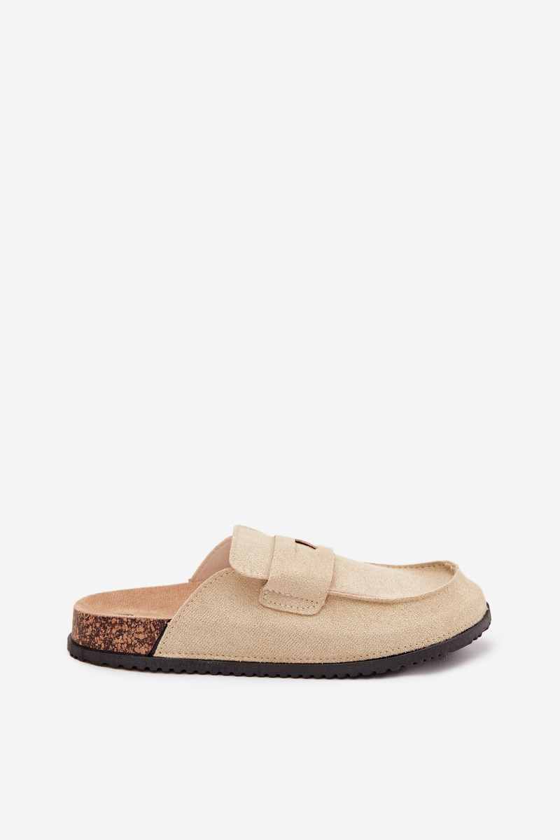 Women's clogs made of eco suede. They feature a strap with a subtle cut-out at the front. Set on a cork platform, they provide comfort and stability, while the contoured insole ensures all-day comfort. Their stylish appearance makes these clogs a perfect match for various summer outfits. When choosing a size, please refer to the size chart. When choosing a size, please refer to the size chart.