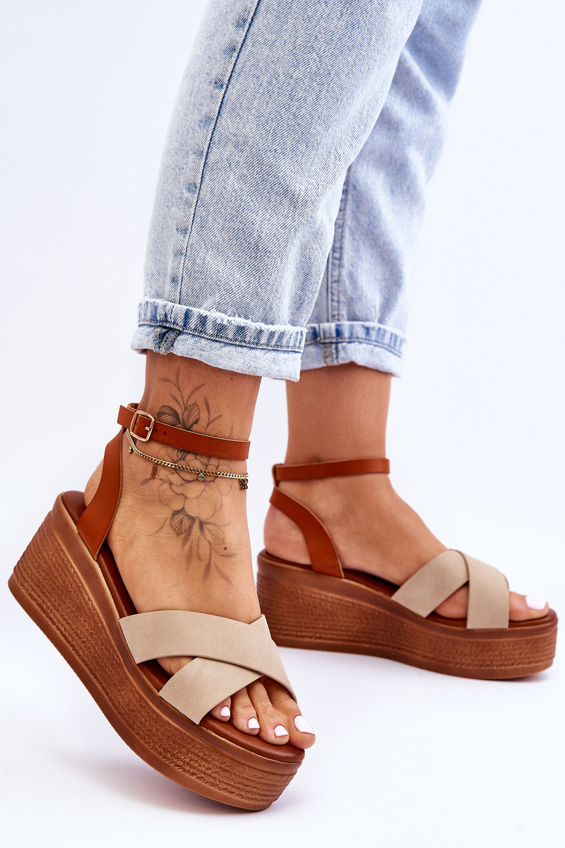 Perfect sandals for hot days! This model was mounted on a wedge and platform. Sandals are fastened with an adjustable strap with a buckle. The soft insole made of eco leather will ensure comfortable use even throughout the day. This model should be in your wardrobe! When choosing a size, please refer to the size chart.