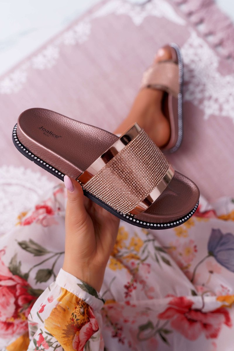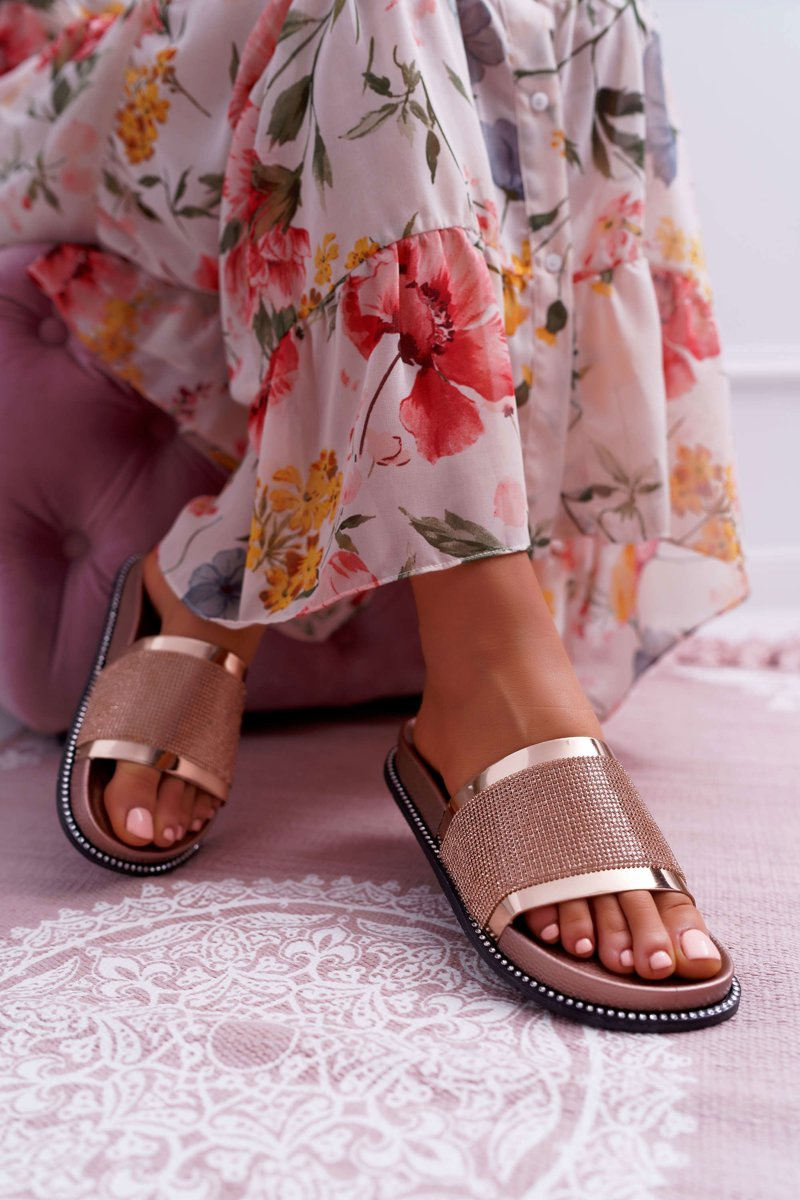 Women's Contoured Flip Flops With Zircons Champagne Rentre