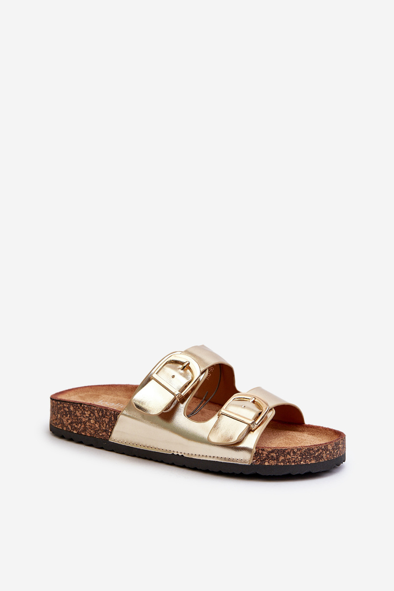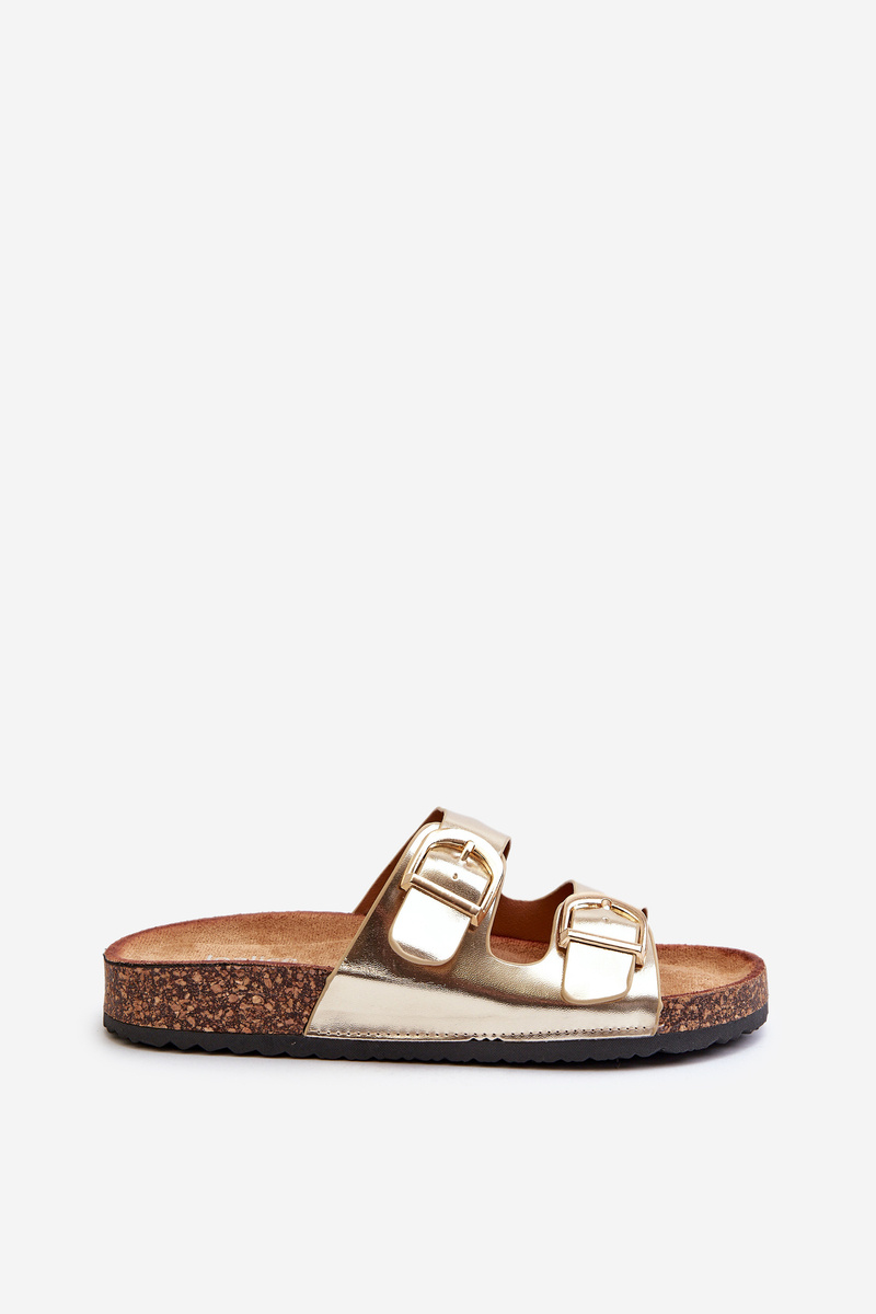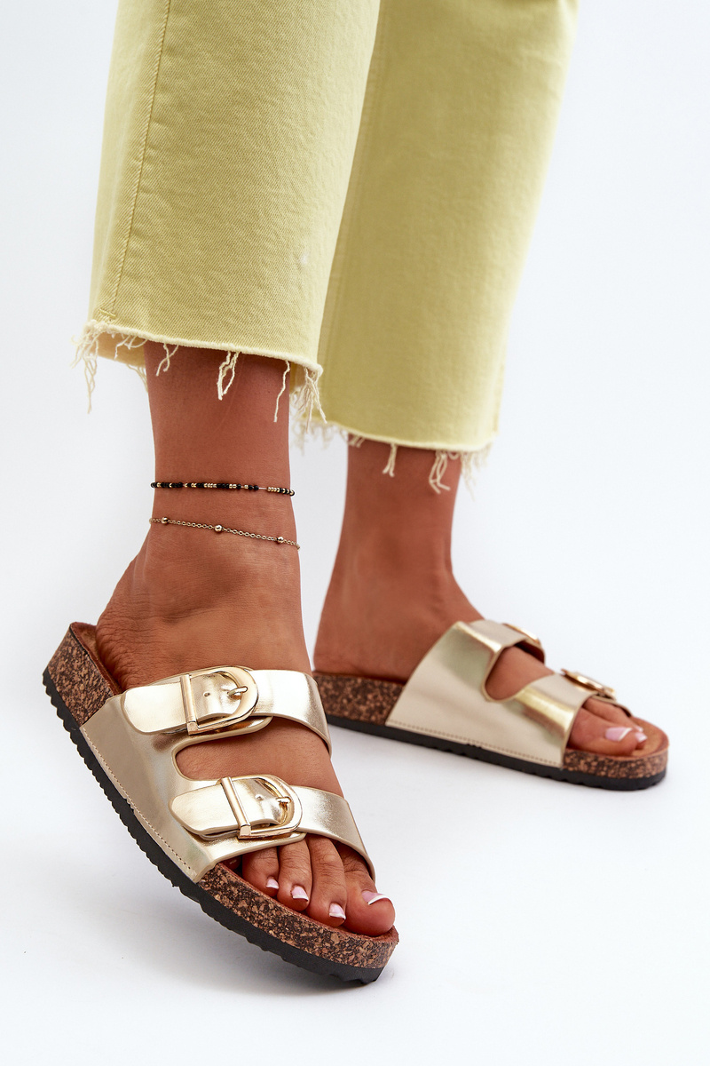 Women's slides are made of eco leather. They have decorative buckles with adjustable straps. This model is set on a cork platform. Perfect footwear for the summer season. These slides have a contoured, comfortable insole. You definitely should have them! When choosing a size, please refer to the size chart.