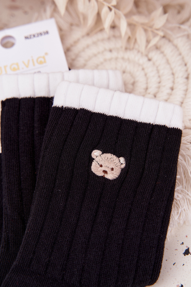 Cotton women's socks with a small teddy bear are a cute and comfortable everyday accessory. Soft, pleasant to the touch, and elastic — they add a subtle, sweet accent to your outfit. Perfect for lovers of delicate, girly details.