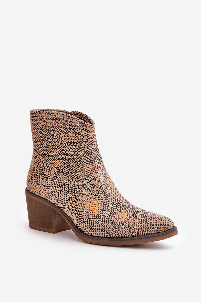 Women's Cowboy Boots With Zipper Animal Print Gold Merisine