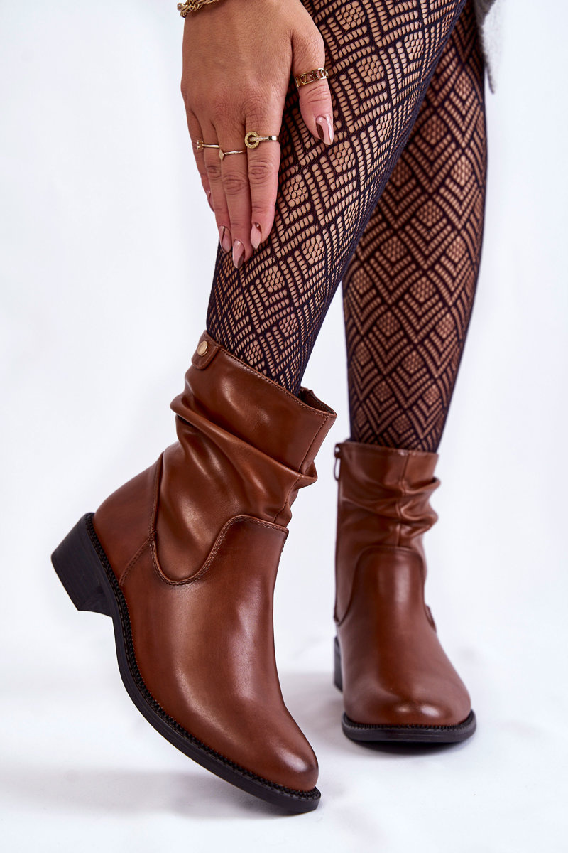 Women's Crinkled Flat Heel Boots Brown Sersa