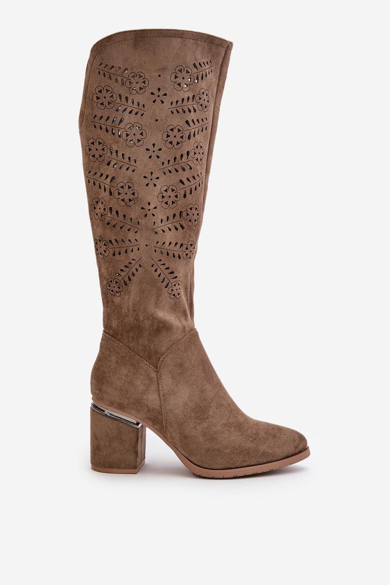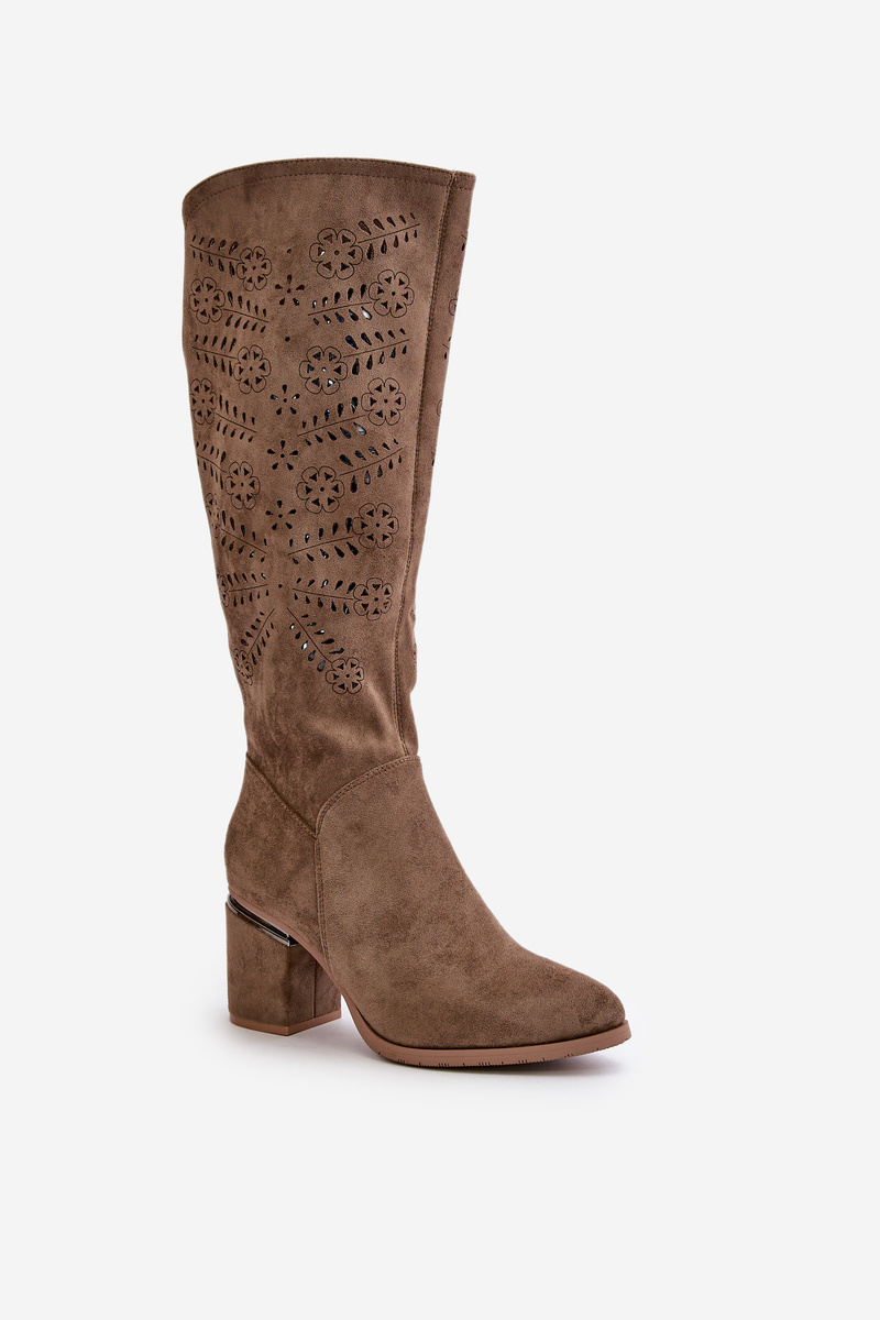 Women's Cut Out Boots with Block Heel in Eco Suede Vinceza 16443 Dark Beige