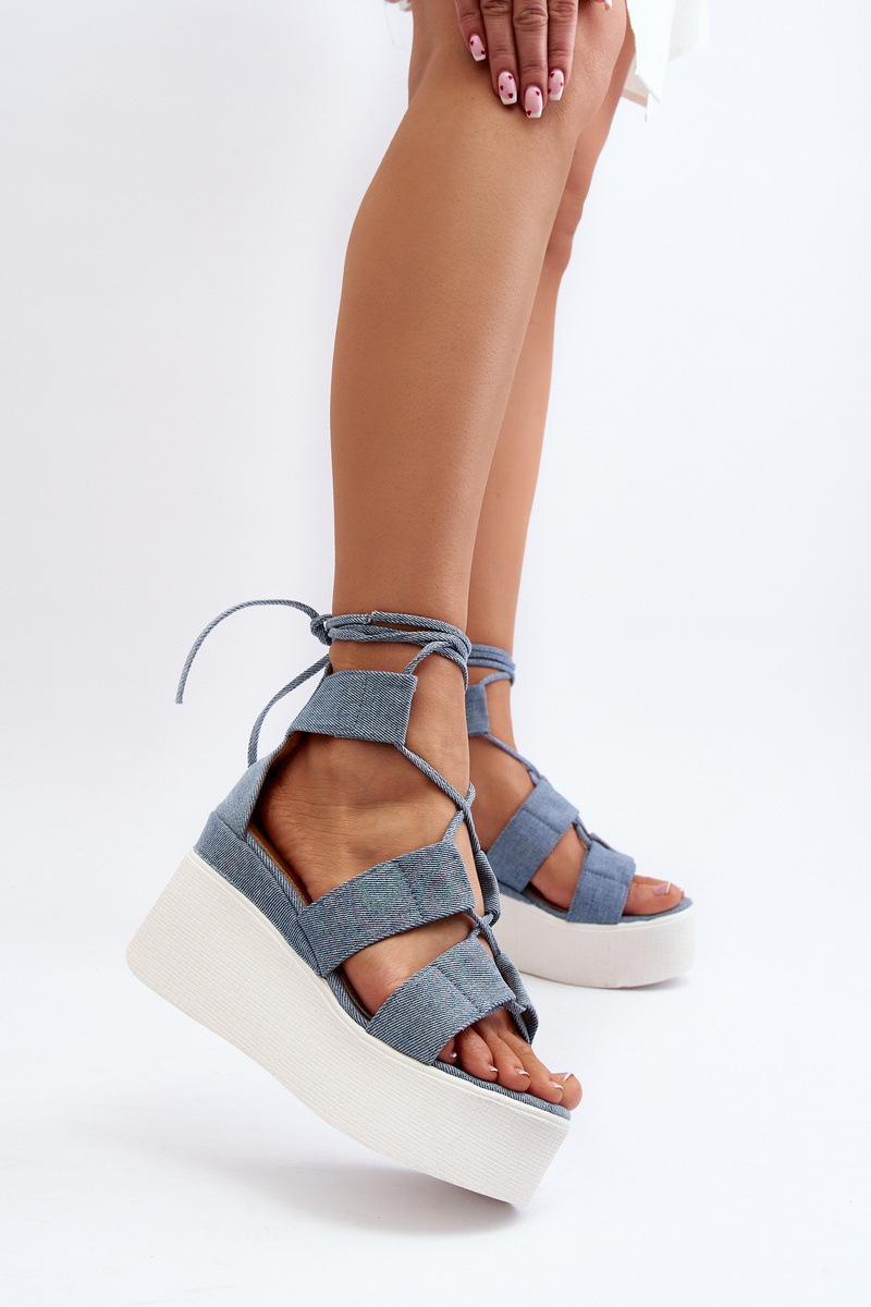 Women's Denim Sandals with Laces Blue Helavi