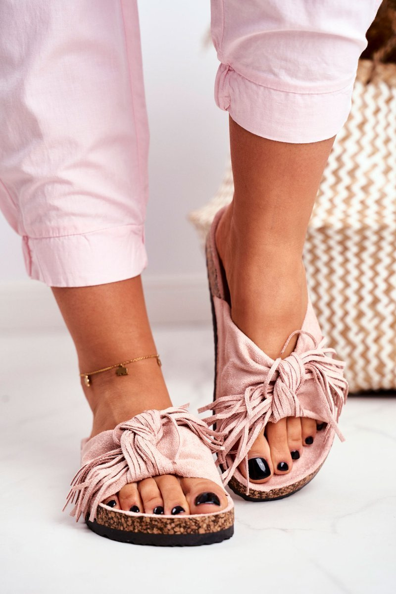 Women's flip flops perfect for summer! They will fit both dresses and trousers. The soft and profiled insole provides incredible convenience and comfort. The flip-flops have beautiful decoration in the form of a tied bow with hanging fringes. They come in several wonderful colors. You must have them, check all the colors!