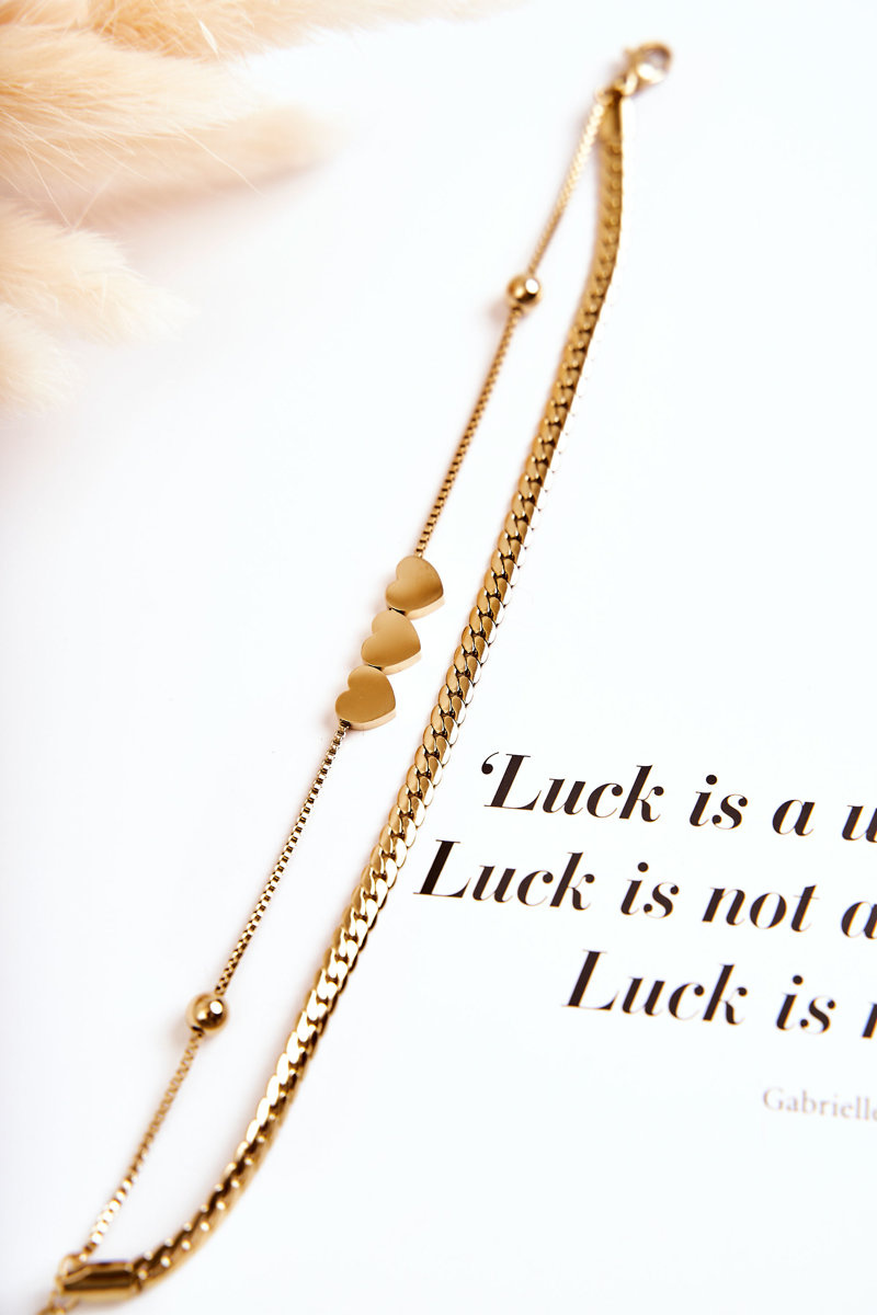 Women's Double Bracelet Three Hearts Gold
