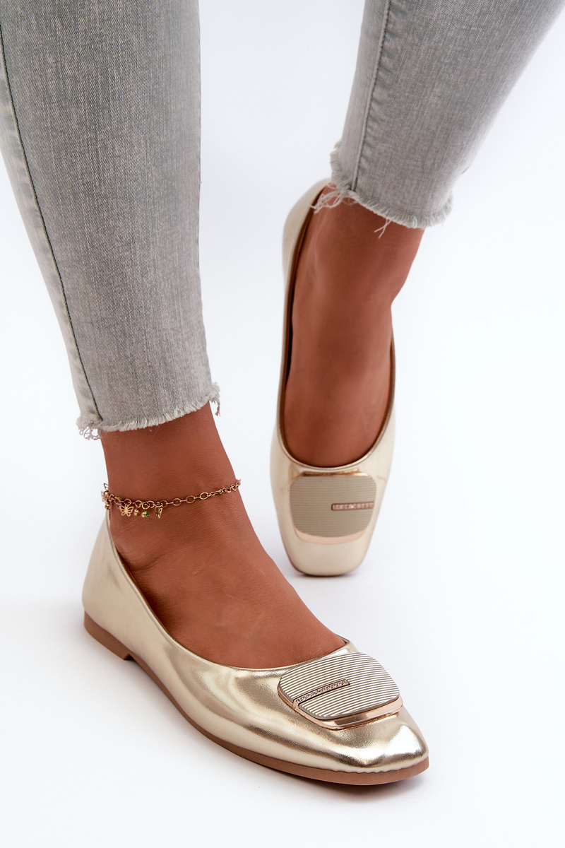 Women's Eco Leather Ballerina Flats with Gold Embellishment Edoslli