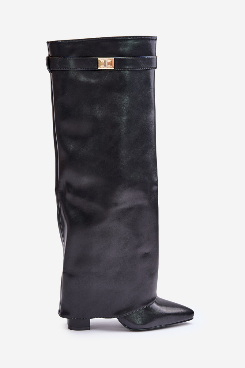 Women's Eco Leather Boots With Rolled Shaft On Heel Black Avamora