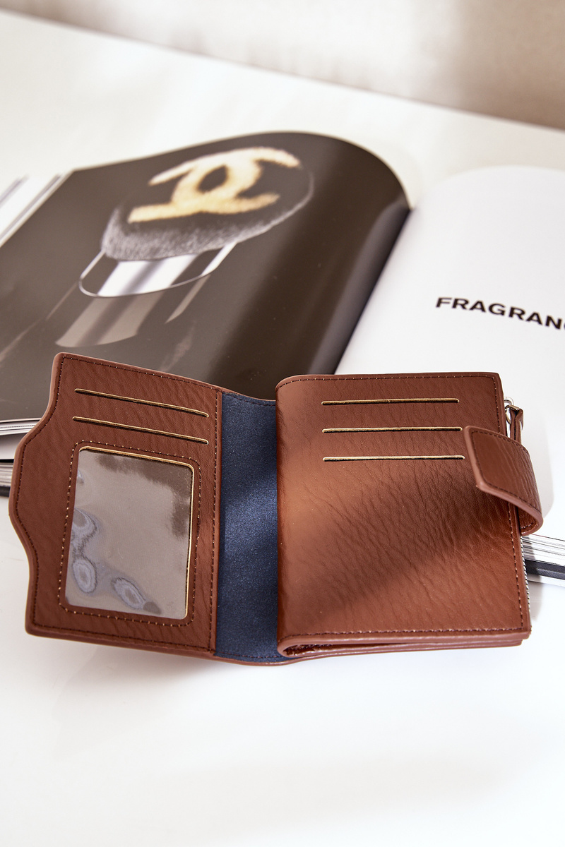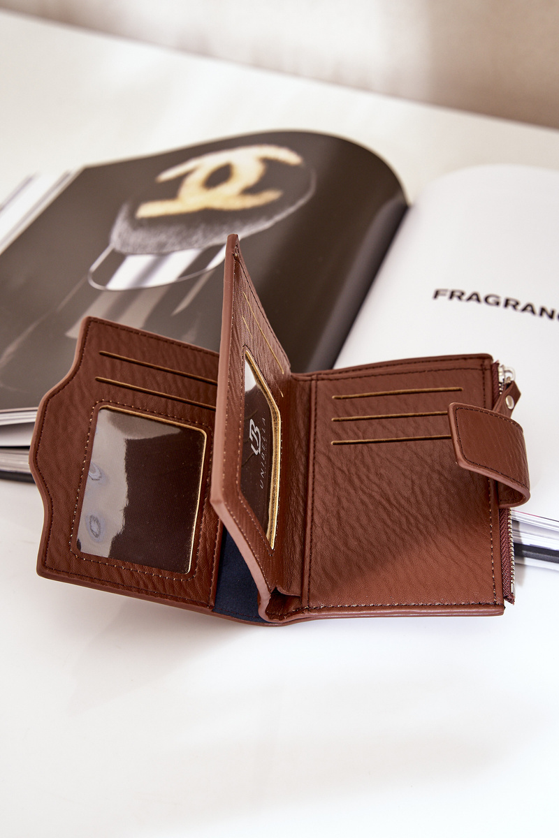 Wallet made of eco-leather, ideal for women who value style and functionality. Fastened with a practical magnetic clip that ensures convenient use. Inside, there is a zippered pocket for coins, providing secure storage for change. Additionally, the wallet offers space for banknotes, slots for payment and loyalty cards, and other essential documents. An excellent choice for both everyday use and as a stylish accessory for a handbag.