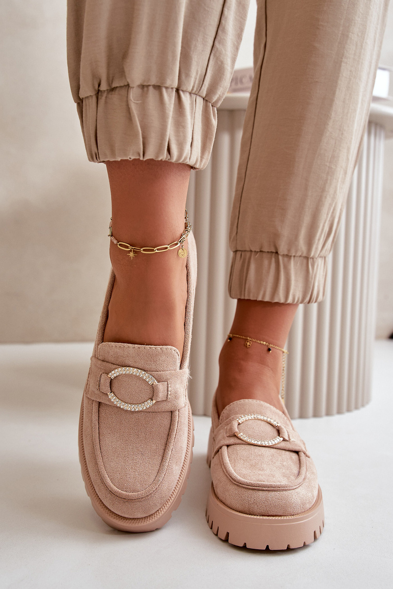 Women's Eco Suede Loafers With Shiny Detail Beige Avellina
