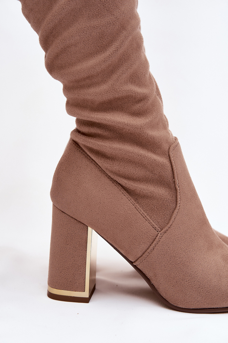Women's Eco Suede Over Knee Boots on Heel Dark Beige Thamine
