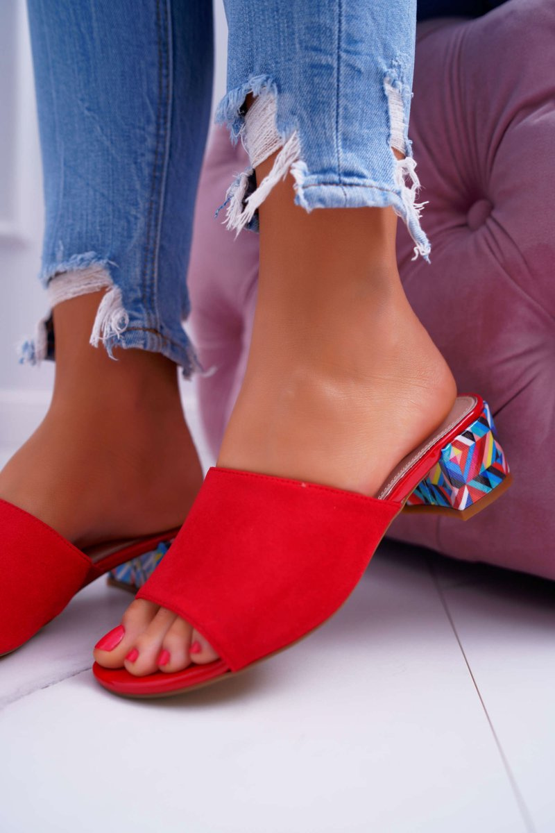 Women's flip-flops don't have to be associated only with the beach or pool. Our latest model from Sergio Leone is a perfect example of elegant flip-flops for any occasion. You no longer have to worry about what to wear on hot days when you want to look fashionable, stylish and feel comfortable at the same time. Flip-flops made of eco-suede, the heel decorated with colorful patterns. Delicate block heel is an absolute must have in the world of fashion! The flip-flops have a small rubber insert, thanks to which they are perfect for people with a higher toggle or a wider foot. When choosing the size, please follow the size chart.