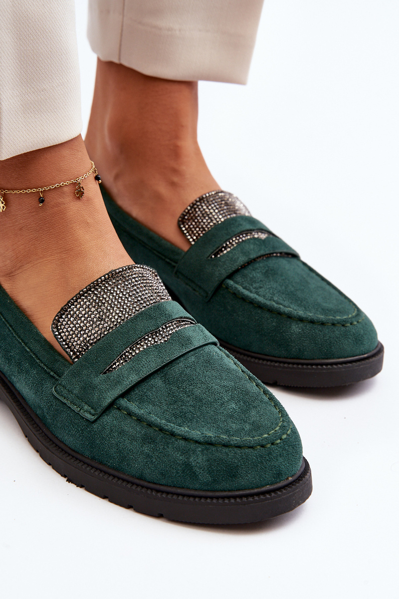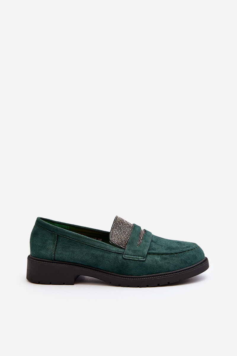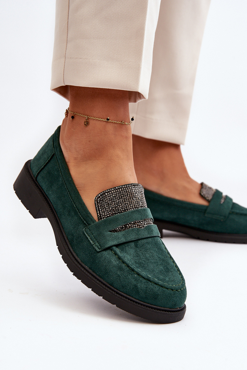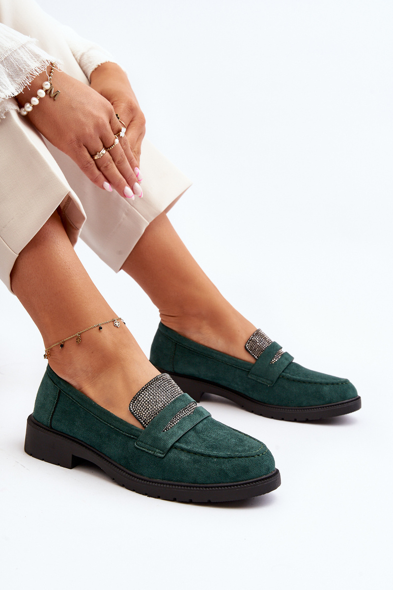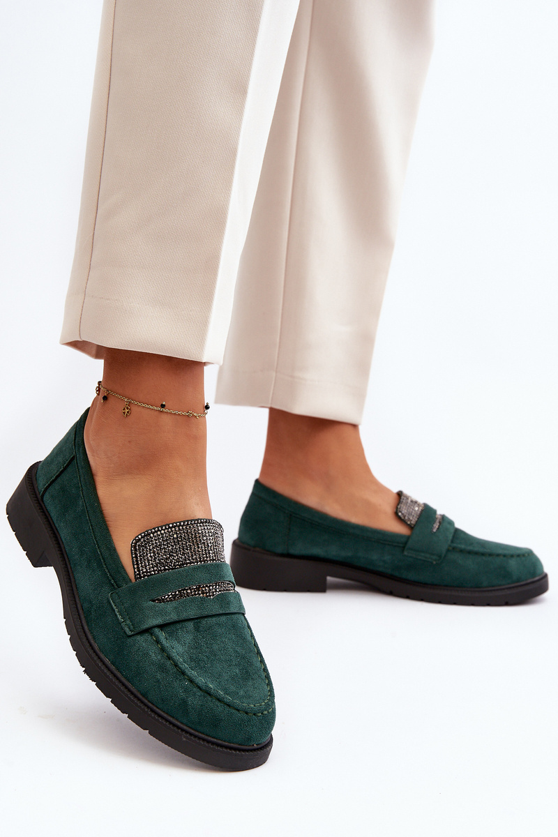 Elegant women's moccasins have been made of eco suede. They are set on a massive platform and a flat heel. They also have a stiffened toe. Soft, eco leather insole will provide comfortable use. The moccasins are decorated with a delicate plate on the front strap. This model should be in your wardrobe right now! When choosing a size, please refer to the size chart.