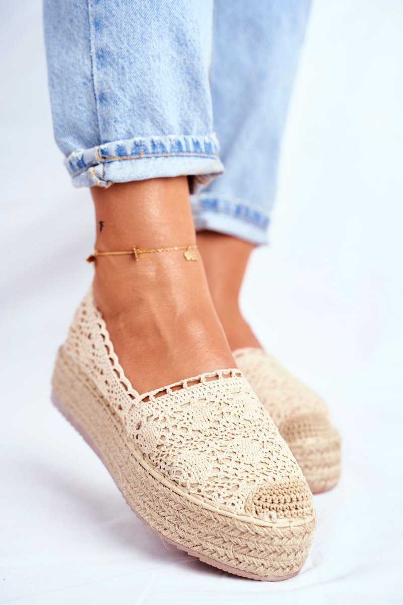 Comfortable, lace espadrilles on a high platform! The outer material will match everything. A woven cord around the sole and beautiful cut patterns are shot in 10! When choosing a size, please suggest a size chart.
