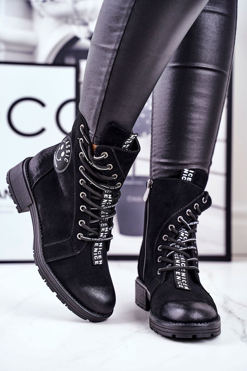 Do not hesitate, this model is selling like hot cakes! The interior is covered with a nice and warm blanket, which will guarantee comfort even on colder days. Decoration in the form of a black belt with NICE inscriptions and unusual lacing - this is what distinguishes these shoes. When choosing a size, please use the size chart.