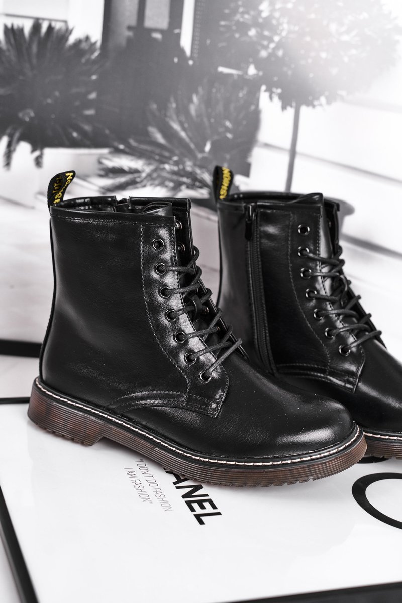 Classic hiking boots, which are an inseparable element of women's, autumn and winter stylizations. The top is made of ecological leather. The manufacturer focused on classic solutions. A strap on the heel as an ornament and easier to put on, a zipper on the side and solid lacing. And it's all at your fingertips! The interior is covered with a nice-to-touch footwear blanket. When choosing a size, please use the size chart.