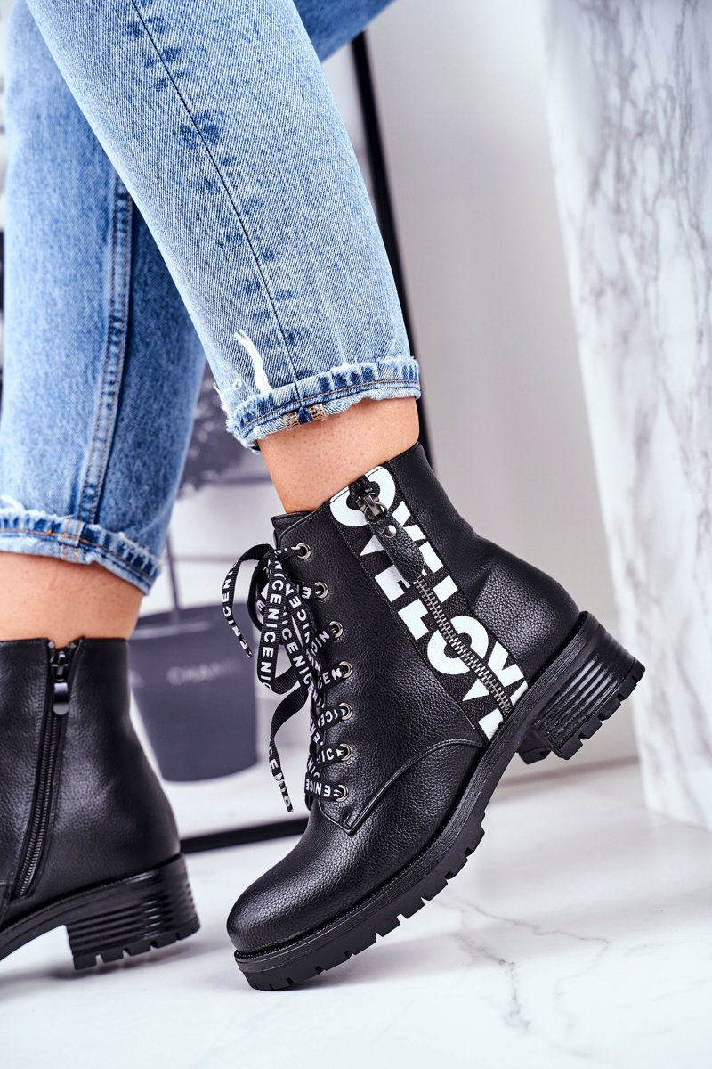 Yes, you see right! These wonderful hiking boots can be yours! The top is made of ecological leather. Trappers decorated with a zipper with the word LOVE, the second zipper will make it easier for us to put on. Black laces with the inscription NICE are a perfect highlight of those wonders that you certainly cannot resist <3 When choosing a size, please follow the size chart.