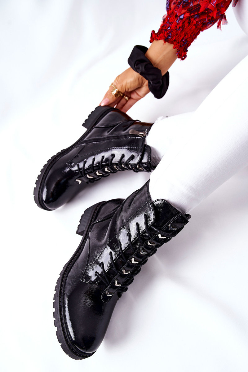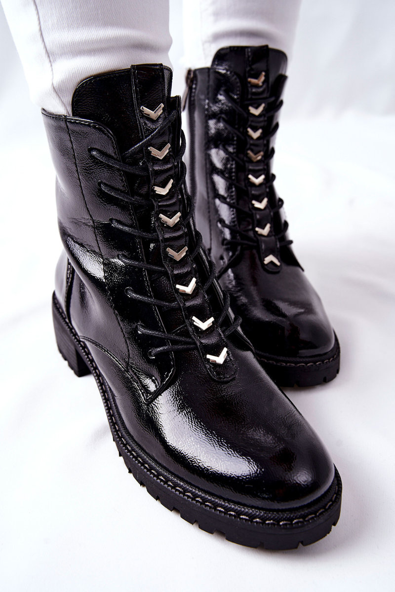 Women's Flat Boots Lacquered Black Myroe