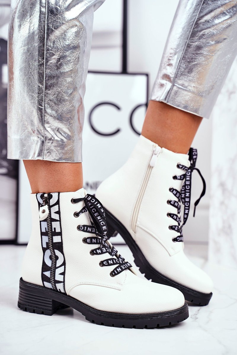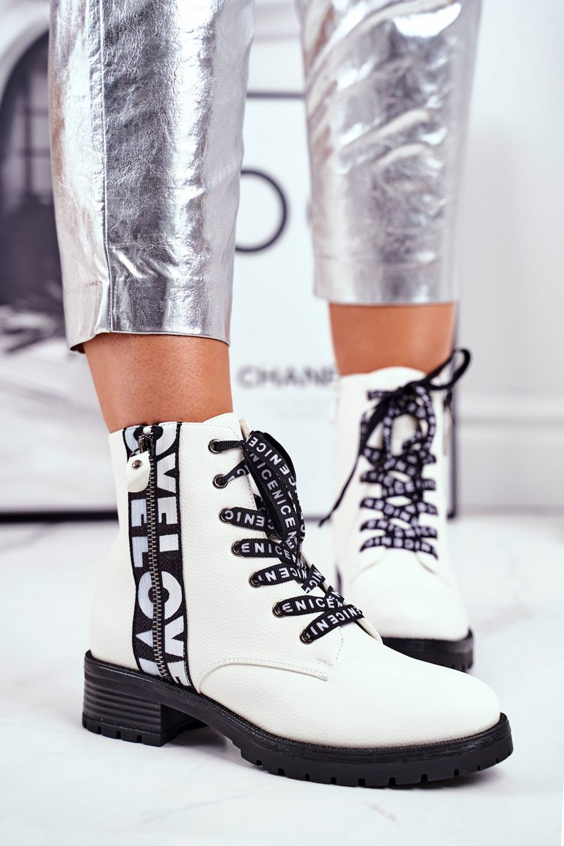 Yes, you see right! These wonderful hiking boots can be yours! The top is made of ecological leather. Trappers decorated with a zipper with the word LOVE, the second zipper will make it easier for us to put on. Black laces with the inscription NICE are a perfect highlight of those wonders that you certainly cannot resist <3 When choosing a size, please follow the size chart.