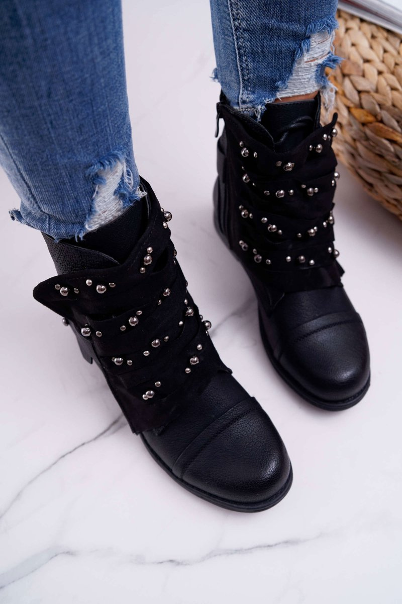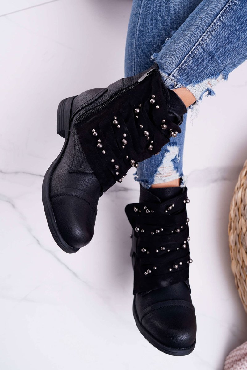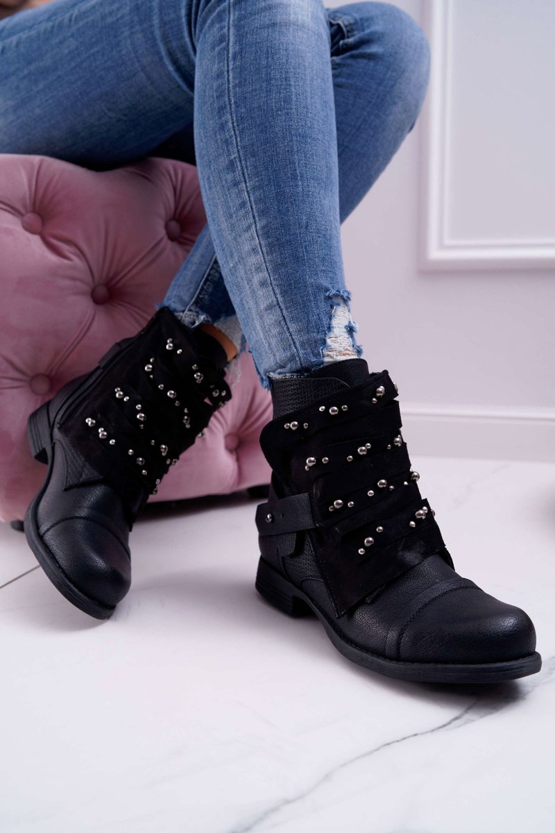 Women's Flat Heel Boots With Rhinestones Black Valko