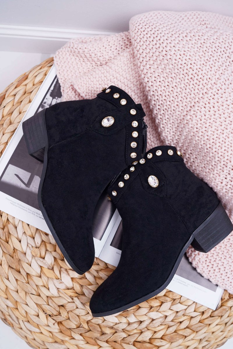 Women's Flat Heel Cowboy Boots With Zircons Black Patti