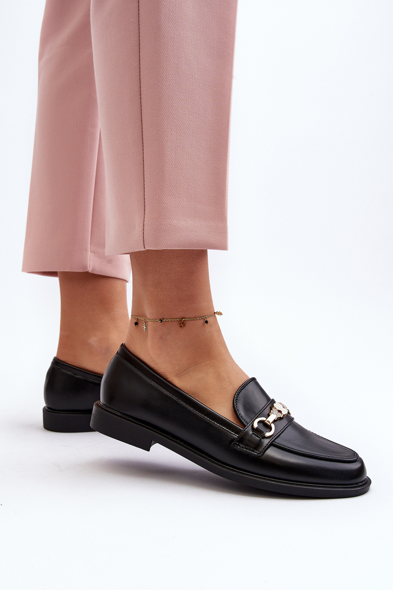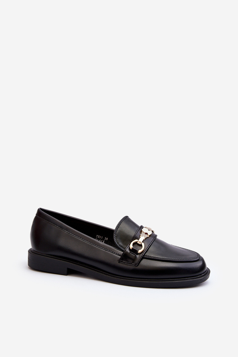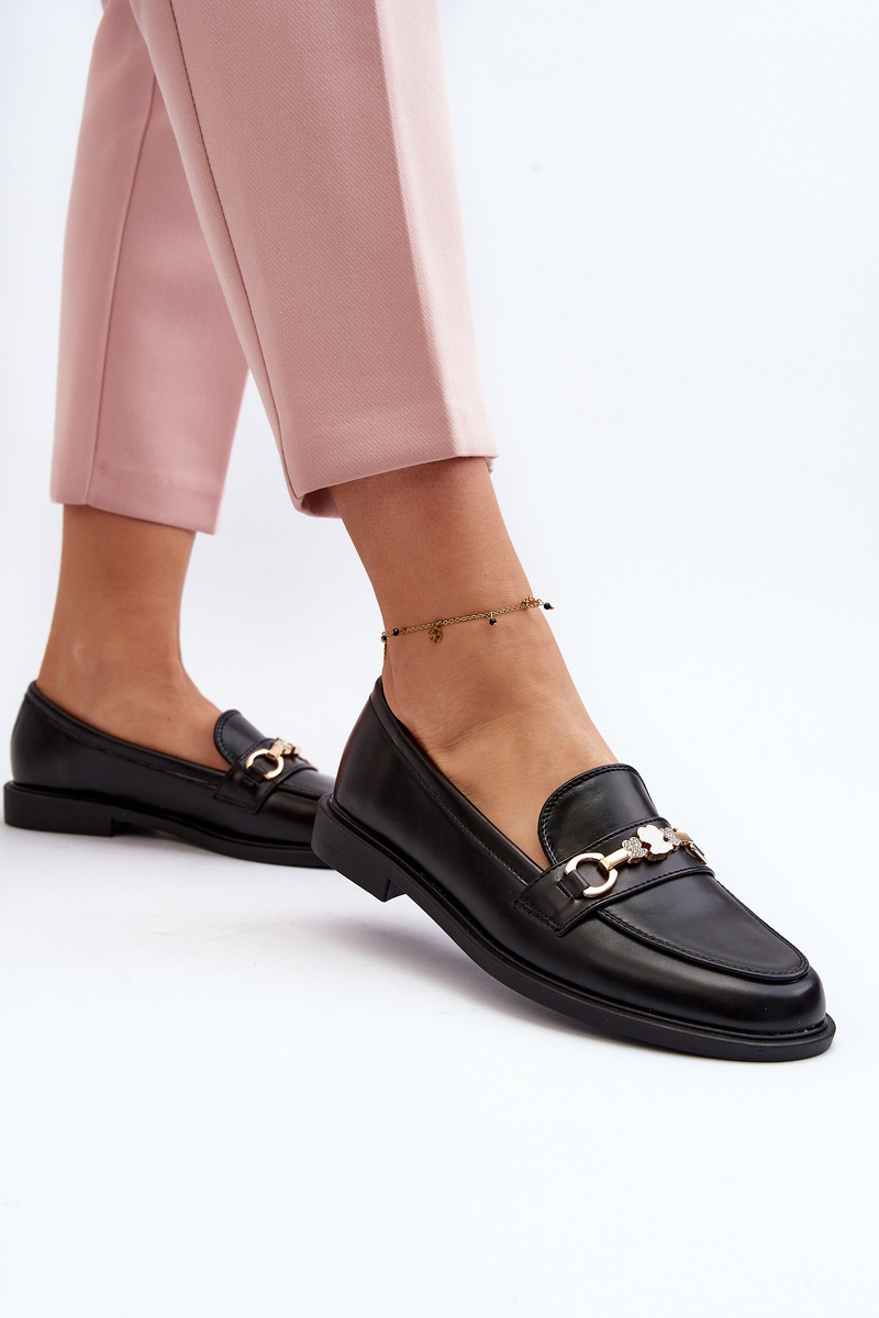 Women's Flat Heel Eco Leather Moccasins Black Vimedia