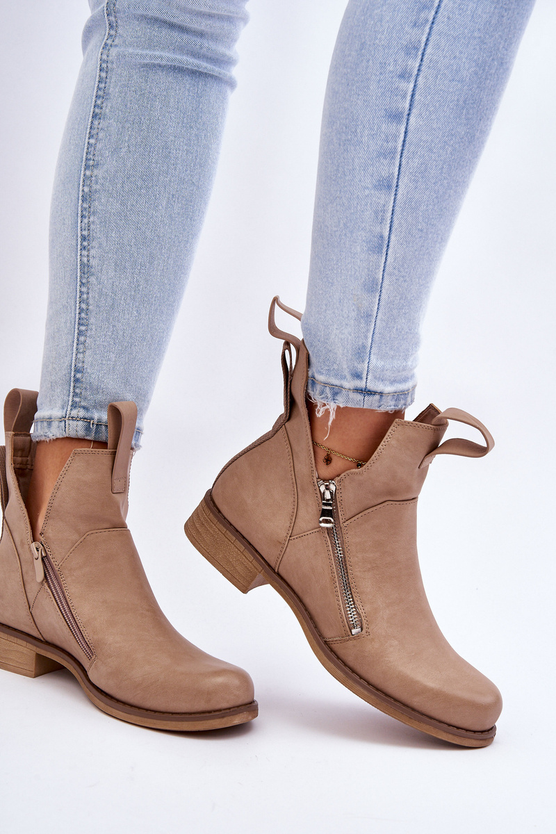 Classic, women's boots are made of eco leather. The model has two zippers on both sides of the upper. The boots were placed on a flat heel. The heel is stiffened. They have a fabric insert inside. A great model for many styles! These boots must be in your wardrobe! When choosing a size, please refer to the size chart.