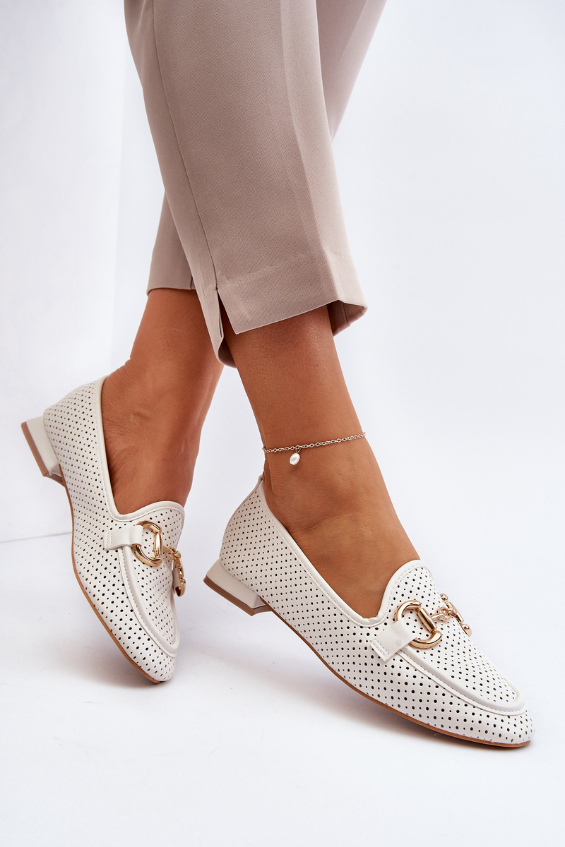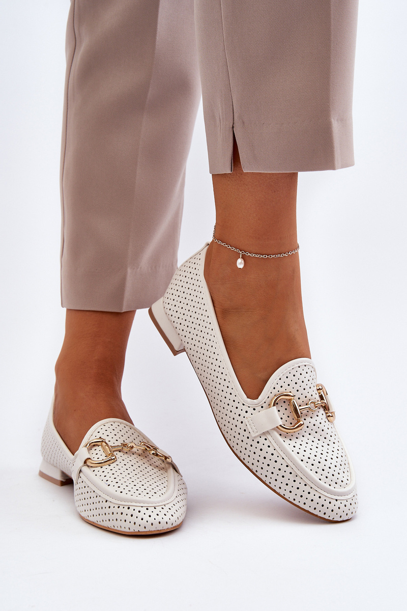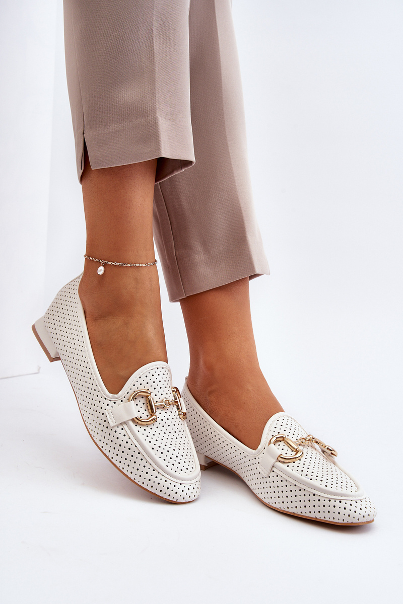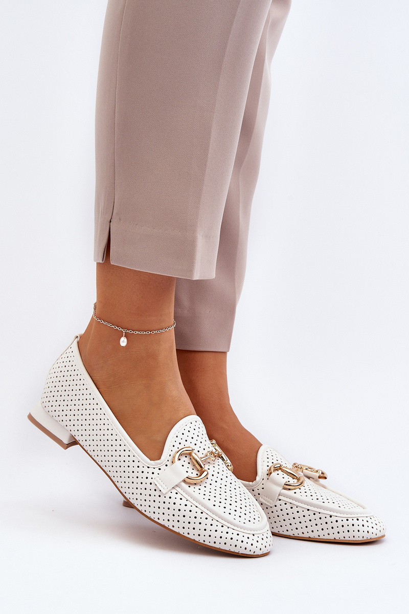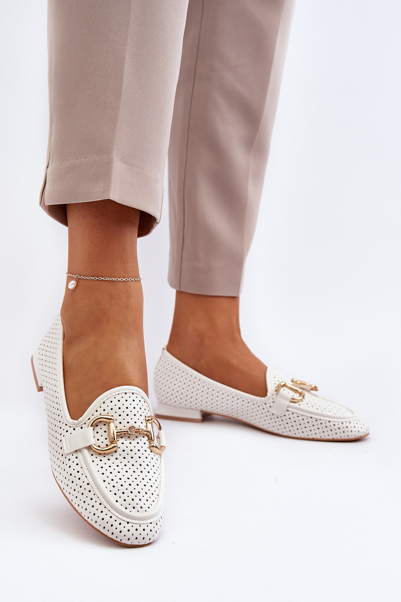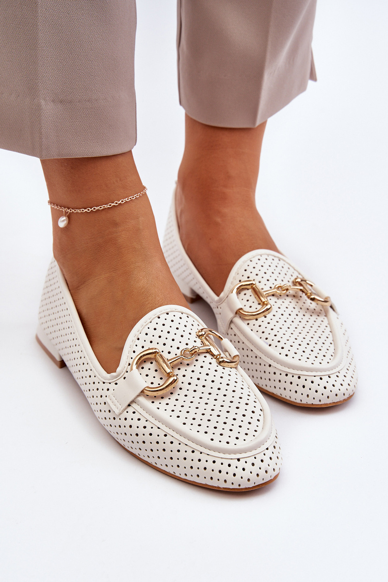 Women's Flat Heel Moccasins with Embellishment White Iluvana
