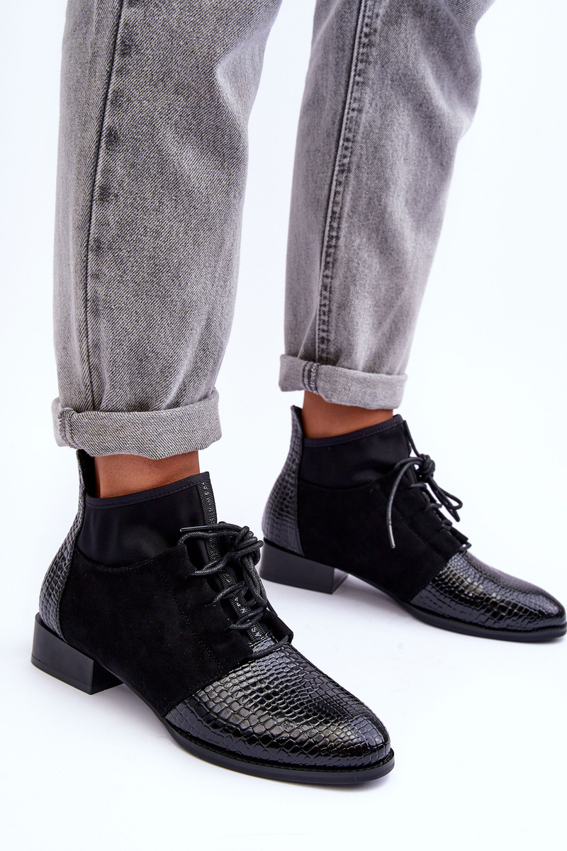 Women's ankle boots have been made from a combination of eco suede and textile material. The soft insole provides comfortable use of the shoe. The shoes have a soft, comfortable insole and a stiffened toe. Insulated with a shoe blanket. When choosing a size, please refer to the size chart.