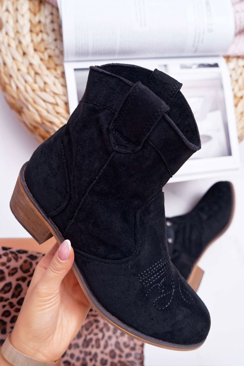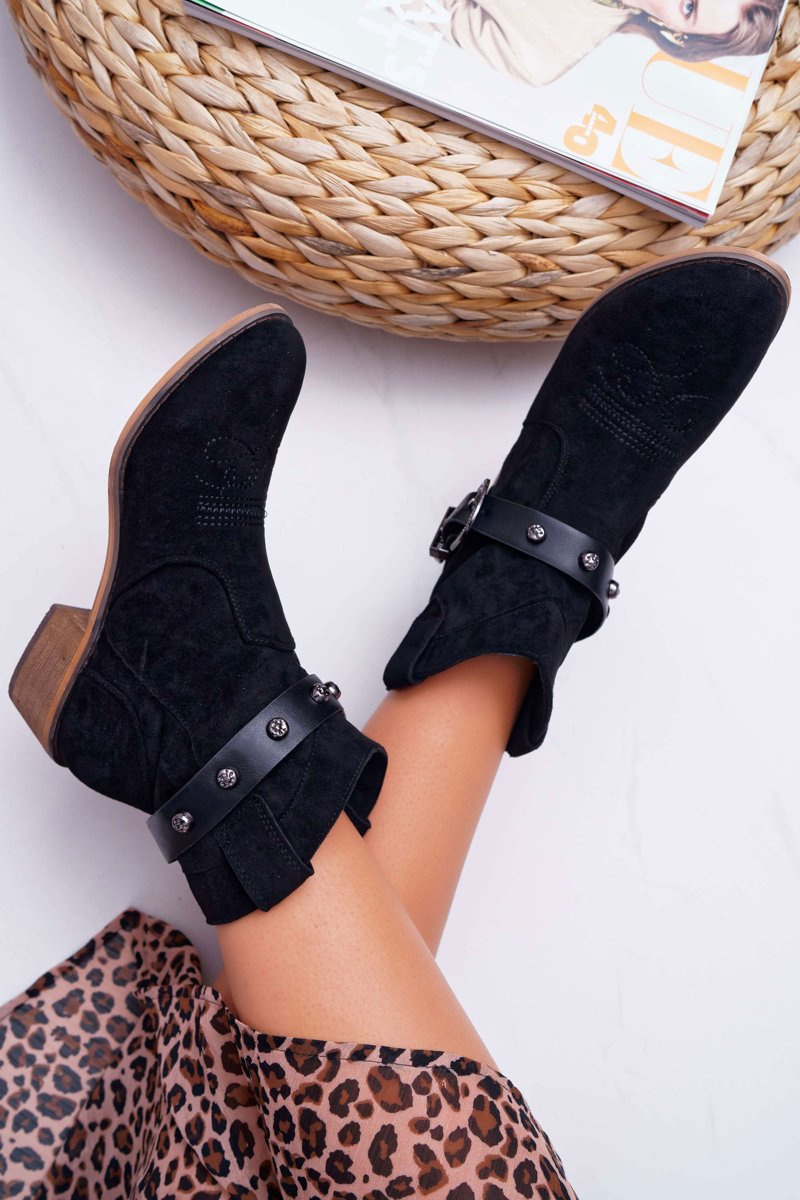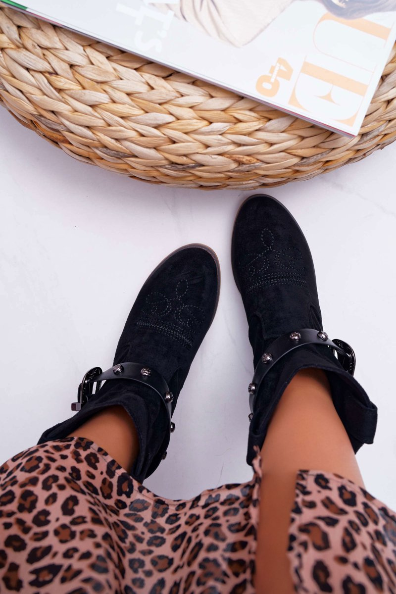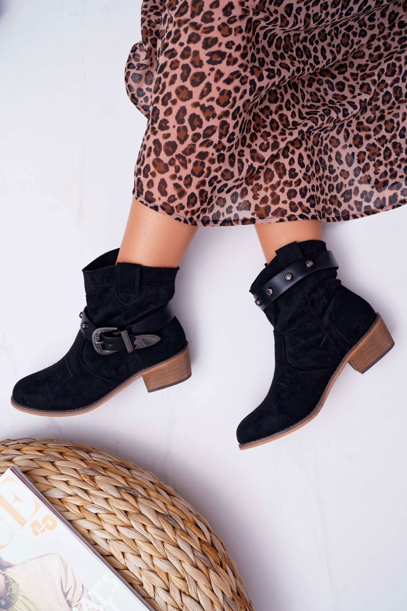 Women's Flat Heeled Cowboy Boots with Buckle Black Ewell