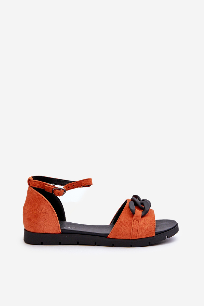 Women's Flat Sandals With Chain Vinceza 17320 Orange